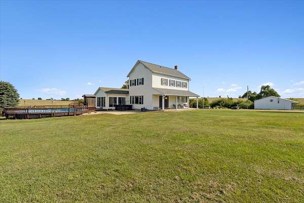 Welcome to peaceful country living with room to roam and space to grow. This charming four-bedroom, three-bath farmhouse offers the perfect blend of comfort and functionality, ideal for those ready to embrace a rural lifestyle with modern amenities. Set on generous acreage, the property includes several outbuildings--great for storage, a personal workshop, or your favorite hobby space. Raise chickens, goats, or enjoy agricultural activities--because here, animals are welcome and encouraged. Whether you're managing a hobby farm or simply enjoying the wide-open skies, there's plenty of room to make it your own. The outdoor area is a standout feature with a refreshing pool and a whirlpool, creating a relaxing getaway right in your backyard. Enjoy quiet mornings with coffee on your porch or host lively weekend gatherings with friends and family. Inside, the home offers spacious living with four well-sized bedrooms and three full baths, including a private primary bedroom retreat. There's ample room for everyone to spread out, whether you're entertaining or just enjoying a quiet evening. The barn is fully equipped with a chicken coop, goat pen, three stalls, a tack room, and a hayloft. It has been completely renovated with updated electrical service and includes a frost-free water spigot. The thoughtfully designed pasture is fenced and cross-fenced with an integrated electric fence and a heated, automatic watering system. Two large compost bins are conveniently located within the pasture, accessible through large gates on all sides for easy equipment access. Wi-Fi has been extended to the barn for seamless connectivity. A spacious 50x100 metal shop offers upgraded LED lighting throughout, an efficient oil-burning furnace, and abundant power with outlets along every wall and two 220V connections. Air connections are strategically placed every eight feet along the north wall, and Wi-Fi access is also extended to the shop. This home is waiting for you....!