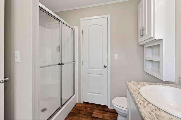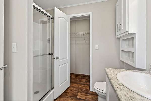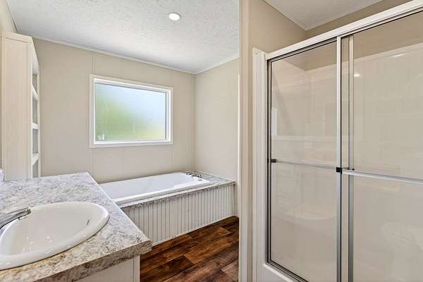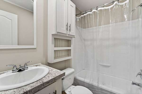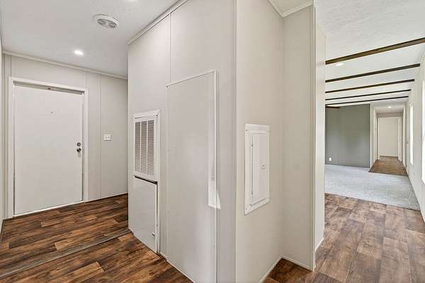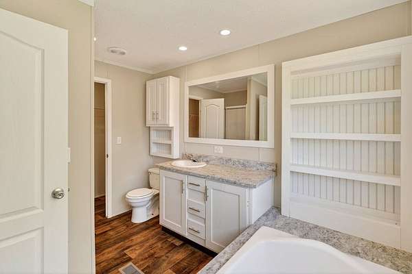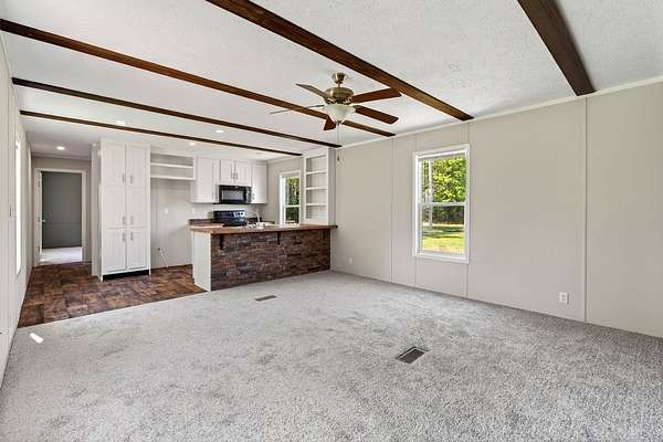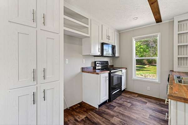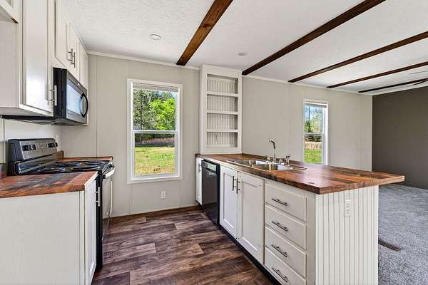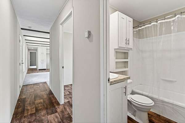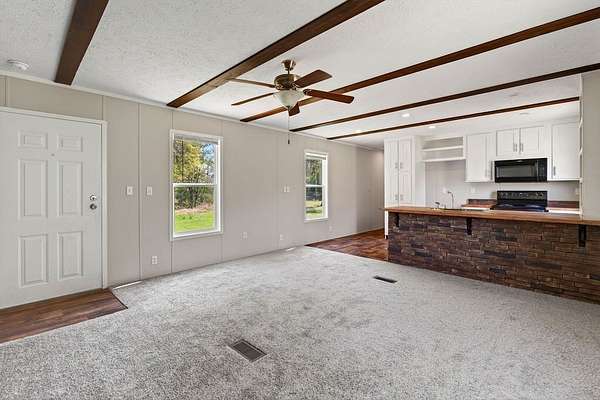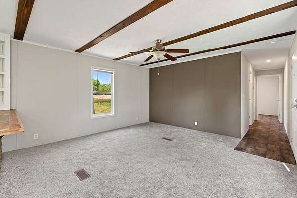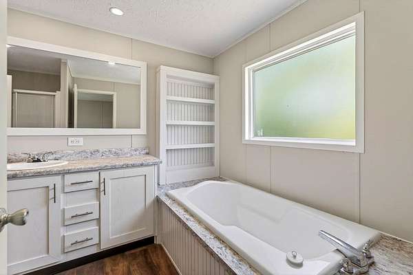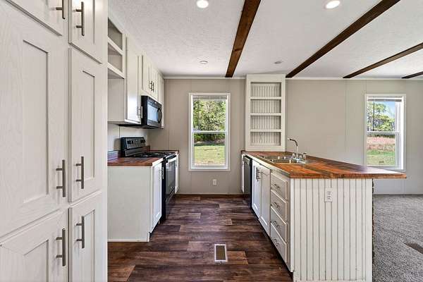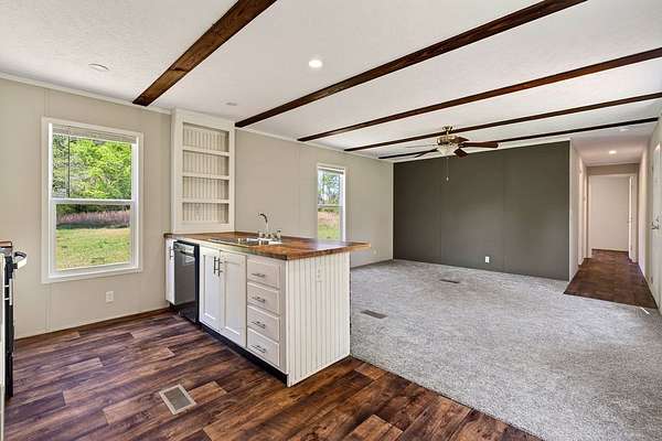 Tucked away on 3.28 private acres, this 2022-built mobile home offers the perfect blend of modern style and peaceful country living. This 3-bedroom, 2-bath home feels like new and features a spacious open-concept layout designed for both comfort and functionality. The inviting living area flows seamlessly into a beautifully designed kitchen complete with custom cabinetry, ample counter space, and a large island ideal for entertaining or everyday use. The split floor plan provides added privacy, with a generous primary suite featuring a relaxing soaking tub, separate shower, and double vanity. Step outside and enjoy the quiet surroundings from the front porch while taking in the beauty of your acreage. With plenty of room for outdoor activities, gardening, or simply unwinding, this property offers endless possibilities. Move-in ready! This home is ideal for those seeking space, privacy, and modern living all in one.