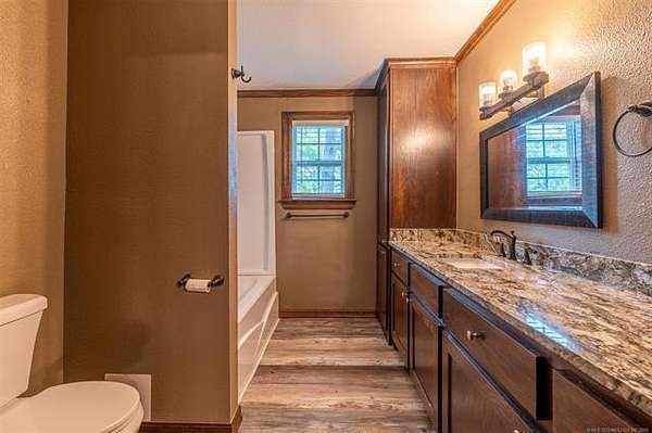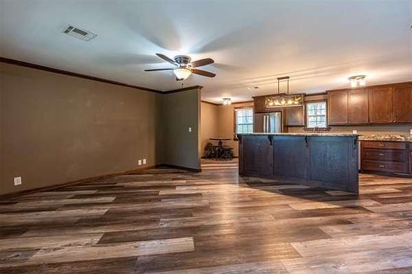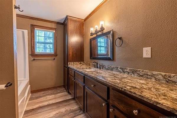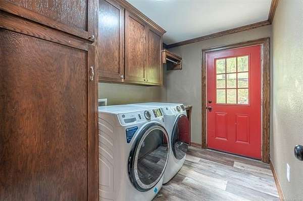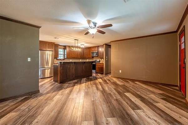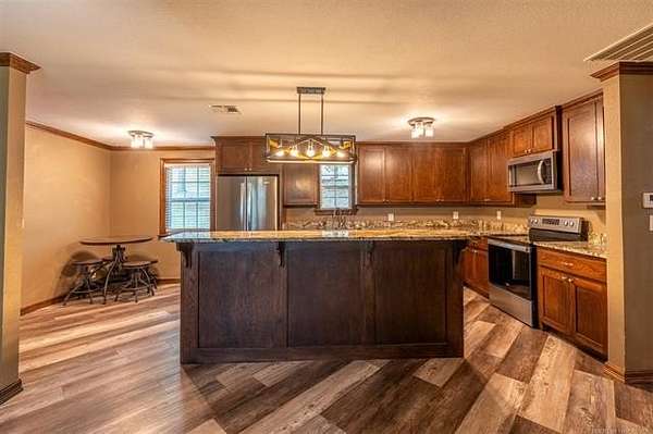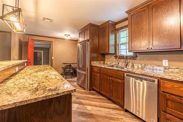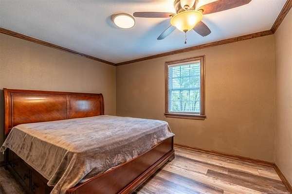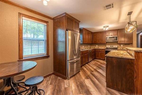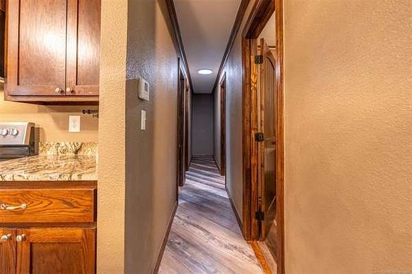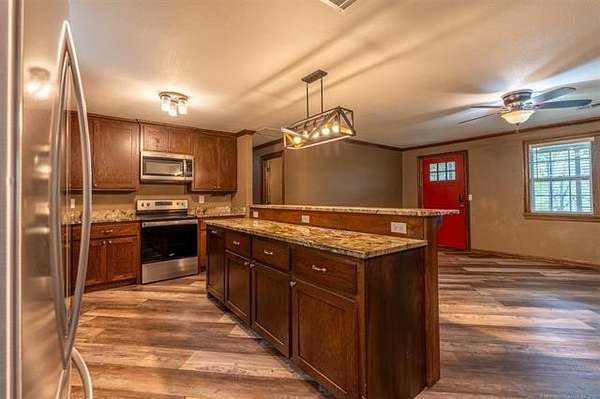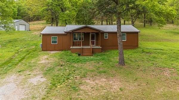 Step inside this nicely remodeled home nestled among 9 acres of mature trees, and you begin to feel yourself "relax". Far enough outside of town limits to enjoy the country atmosphere, but still convenient to life's necessities. The open kitchen design means food preparation doesn't require leaving family or guests, and the granite countertops add an elegant touch. (The same counter material tops the utility room sink's vanity!) The expansive shop building (30x40) is big enough to house cars, ATV's, and all your tools/workbench. It was recently built (approx 2023) with high ceilings, metal siding and roof, plus concrete floor, overhead and walk-thru doors, electrical outlets aplenty, and a concrete floor. AND a flue if you elect to add a wood burner to work in even the coldest weather. Fiber optic installed, and city water lines expected by end of 2026, thanks to a partnership between Locust Grove and the Cherokee Nation. (Confirm with Town of Locust Grove, timing can change). Your closest neighbors are the deer, and the noisiest... likely the woodpeckers. (Well, in the fall, MAYBE a bull elk from the ranch just a bit further down the road.) Call to see it for yourself.