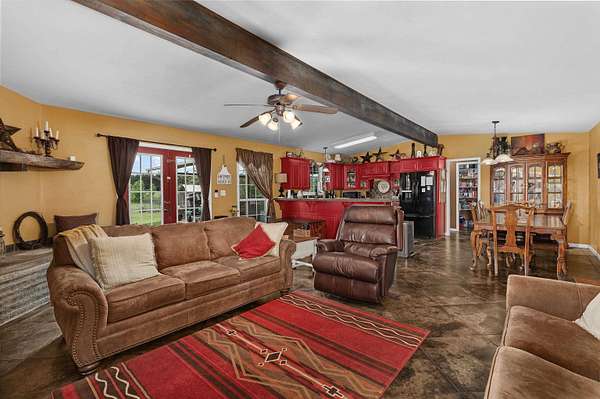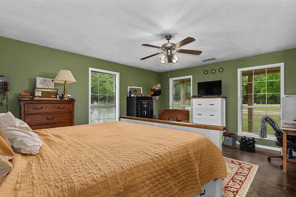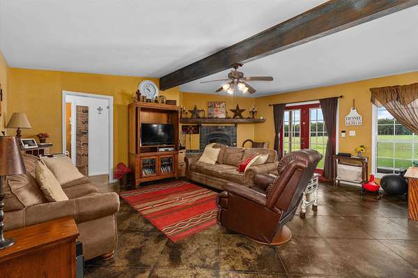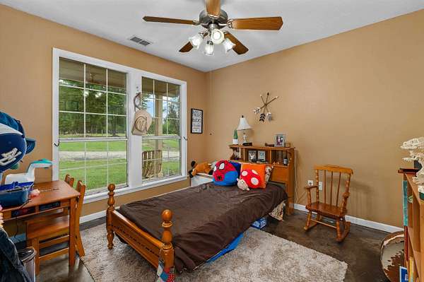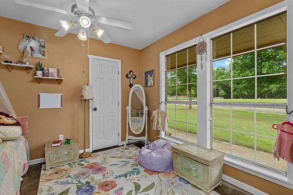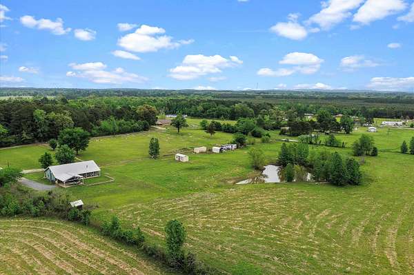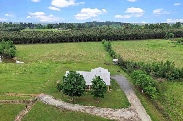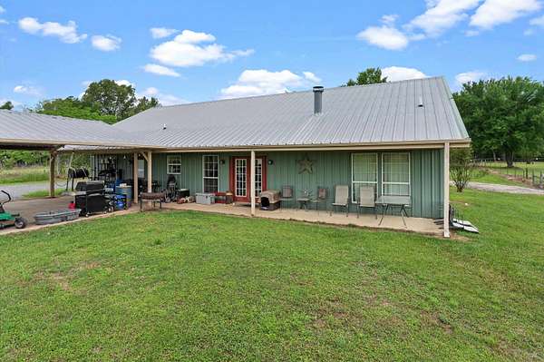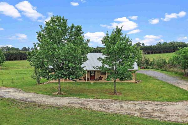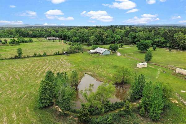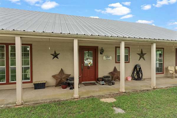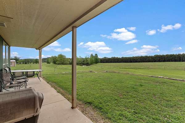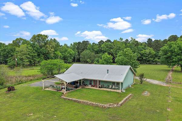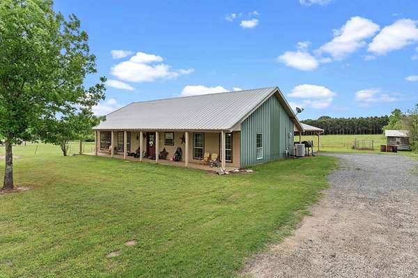 Welcome to your own slice of East Texas countryside at 8550 New Hope Road where modern comfort meets wide-open freedom on over 9 beautiful acres. Designed for both everyday living and a true rural lifestyle, this 4-bedroom barndominium offers the space, functionality, and charm so many are searching for. Step inside to a thoughtfully designed interior featuring durable finishes and an open-concept layout that feels both inviting and spacious. The soaring ceilings with exposed beams create a warm, airy atmosphere, while the split-bedroom arrangement provides a private retreat in the primary suite. Natural light fills the home, making it perfect for gathering, entertaining, or simply enjoying peaceful country living. Outside, the property truly shines. Fully fenced and ready for livestock, horses, or agricultural use, the land offers lush pasture and a stocked pond perfect for relaxing afternoons or casting a line. Covered front and back porches give you the ideal spot to take in those East Texas sunsets, while additional features like a carport, playhouse, and garden space add southern charm. A separate outbuilding equipped with utilities opens the door for endless possibilities! Whether you need a home office, guest space, or workshop. There’s even an RV hookup for added convenience when hosting friends and family. With an Ag exemption already in place, you’ll enjoy the benefits of lower property taxes while embracing a slower, more peaceful pace of life. If you’ve been dreaming of a property that offers privacy and country beauty, this one checks all the boxes. And as a unique bonus, your neighbors next door are about as quiet and low-maintenance as it gets no late-night noise, no unexpected traffic, just a little extra peace and privacy. Schedule your showing and come experience it for yourself.