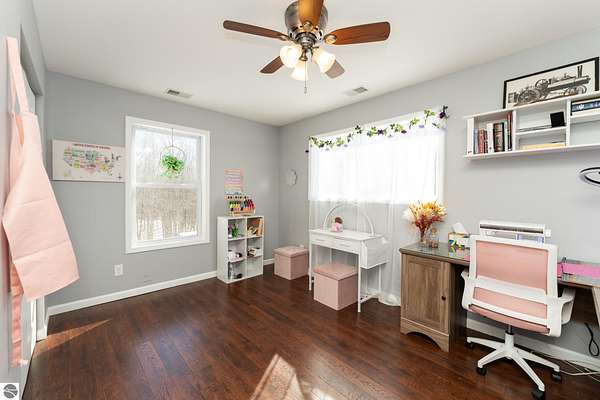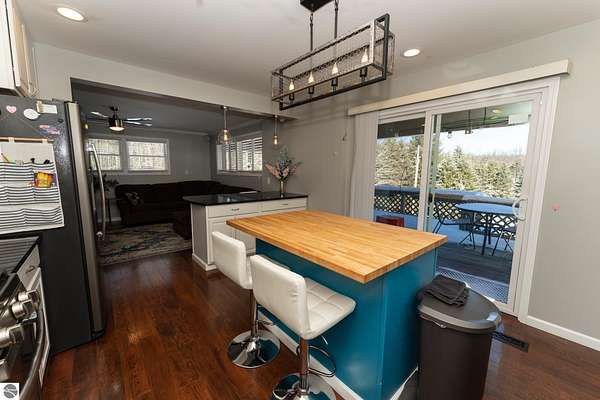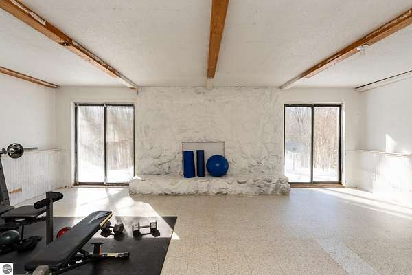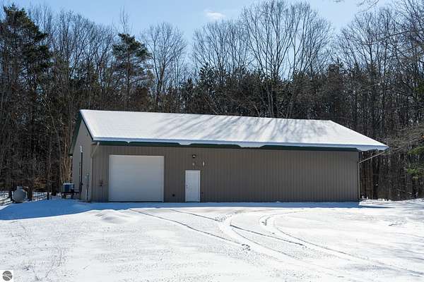 20 wooded acres. Fully renovated home. 64x40 heated pole building. This renovated 3-bedroom, 3-bath home offers over 2,600 total sq ft and sits on 20 beautiful wooded acres just minutes from Evart and US-10 , offering privacy, space and a property that truly has it all. The home was fully renovated in 2018, including plumbing, electrical, mechanicals, insulation, windows, siding, metal roof, appliances, on-demand hot water, front loading washer and dryer, new well, and a standby generator for peace of mind. The kitchen features quartz countertops, GE Profile Black Slate appliances, a butcher block top island, and direct access to the large front deck, perfect for morning coffee or evening gatherings. The main floor also includes a living room with electric fireplace insert, primary bedroom, a full tile bathroom, and a spacious 7x12 walk-in closet. Upstairs you'll find two additional bedrooms, a second full bath, and a large family room. The walkout lower daylight level offers nearly 1,000 sq ft ready to finish space, a third bathroom, and a wood-burning fireplace with two sliders leading to the expansive rear deck, ideal for entertaining or relaxing while watching wildlife in your backyard. Outside, the property continues to impress with an insulated 2½-car detached garage with bar and workbench and a massive 64x40 pole building featuring spray foam insulation, steel interior and exterior, two 200-amp service panels, forced-air heating and cooling, half bath, water, drain field, and 10-ft overhang with concrete approach. With room to hunt, space for a workshop, and even fruit trees including apples, peaches, and pears, this property offers the opportunity to enjoy country living while still being close to town. If you’ve been searching for a property with acreage to hunt, a shop, and a move-in ready home, this one is worth seeing in person.