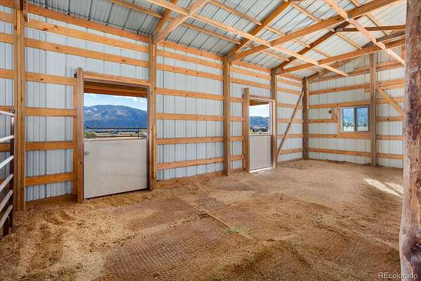 A 6-stall barn (54' x 40') with classic horse stall doors makes this property ideal for horses or flexible use. Inside, an elegant foyer welcomes you to an open, light-filled floor plan. The main-floor primary suite includes a spacious en-suite bath and a French-door room that’s perfect for an office or art studio.