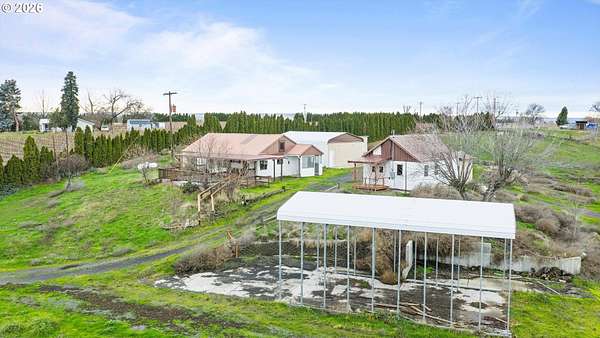 A Rare Acreage Opportunity with Shop, Outbuildings & Endless Potential. Set on 3.66 usable acres in the heart of Oregon's scenic countryside, this single-level ranch-style home offers a compelling opportunity to create your own private retreat, hobby farm, or work-from-home compound.The true value shines beyond the main residence. A detached shop (approx. 720 sq ft) is equipped with power and water, ideal for equipment, projects, or small business use. Possible ADU???Two additional powered outbuildings (approximately 432 sq ft and 480 sq ft) provide flexible space for storage, livestock, workshops, or creative pursuits. Covered RV parking adds even more functionality for those with recreational vehicles, trailers, or farm equipment. The land itself offers room to breathe, featuring open pasture, established access, and a pond, adding a unique rural charm and peaceful backdrop. With RR-2 rural zoning and multiple structures already in place, this property presents exceptional upside for buyers seeking space, utility, and long-term potential.