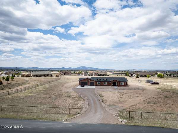PRCE REDUCED!! Welcome to this single level luxurious, 2023 custom built ranch home! Located in the highly desirable Lonesome Valley Community in Prescott Valley. Offering privacy and breathtaking mountain views. Horse property in a 2-acre lot. Upon entering the gorgeous entrance double door you'll find the foyer that opens to a beautiful split open floor plan built with high-end construction material, designed with energy efficiency in mind, the walls are insulated with FOAMULAR NGX Rigid Foam Insulation offering superior thermal protection. Fire Sprinklers, 10 Ft H ceilings though the house, 11ft Hight ceilings in the living room, tile floors, a fireplace in formal living room, plenty of windows that flood the space with natural light. The gourmet kitchen features granite countertop kitchen Island, walk-in pantry, and plenty of storage cabinets. Formal Dining Room. Two master suites. The Main Master Bedroom includes: 2 Walk-in closets, bathroom with double sink, granite counter tops, Walk-in showers plus beautifully design separate soaking bathtub. Relax on the expansive patio, perfect for outdoor entertainment. 3-car garage with 10 ft H ceiling + ample parking space on the slab. Separate storage room on a slab. Experience country club living while staying close to schools & shopping and Entertainment! Come see it, before it is gone!