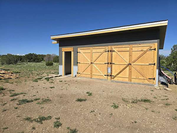Discover an idyllic 4+ acre escape in the enchanting Rio Cucharas subdivision, Walsenburg, CO. This parcel offers breathtaking mountain views and is a stargazer's dream. Equipped with electrical service and on-grid solar panels, it promotes an energy-efficient lifestyle. Charge your EVs or RV seamlessly with three 220-volt outlets. A sustainable rain catch system with a 1,500-gallon cistern complements the 300 sq ft custom cedar workshop, ready for in-floor heating installation. Plans for a 2000 sq ft, 3-bedroom, 2-bath house are included. Being minutes from Lathrop State Park and Spanish Peaks Regional Health Center enhance the living experience, enriching this community with leisure and care amenities.