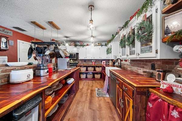 A home filled with character on 2.34 acres near the lake, this spacious 6 bedroom, 2 bathroom property offers approximately 4,000 square feet of living space. The interior features a large 10x20 schoolroom that can function as a classroom, office, craft room or flex space, along with warm rustic finishes and generous kitchen and dining areas.