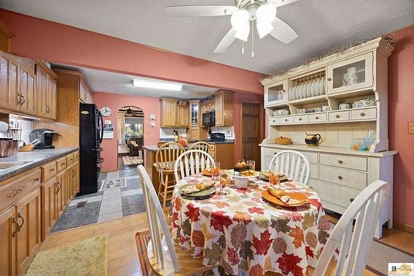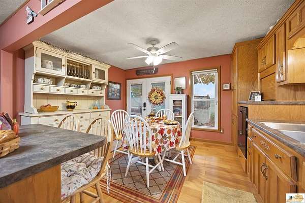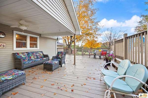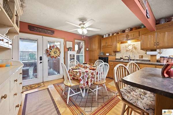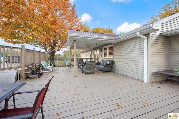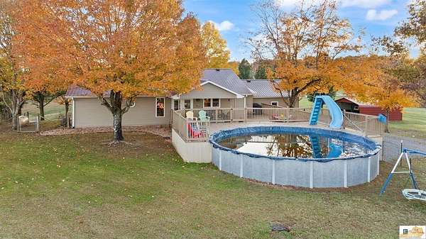 Looking for your own small-scale farm with all the modern comforts? This property checks every box! Situated on 4.36 acres (m/l) just five minutes from town, this beautiful country home offers the ideal setup for a mini farm--complete with a barn, pasture for horses or livestock, a small grove of trees, and even a seasonal spring. The well-maintained home features 3 bedrooms and 2 full baths with an inviting open layout. The kitchen and dining area showcase custom oak cabinetry and stylish finishes that blend charm with functionality. Hand-scraped hardwood floors flow throughout much of the main level, and the spacious living room is perfect for gatherings. The large primary suite includes walk-in closets with custom organizers and an ensuite bathroom designed for comfort and convenience. Additional highlights include central heat and air, a generous utility/laundry room, an attached garage, and a full unfinished basement--ideal for storage or future expansion. Outside, the property shines with its incredible outdoor living spaces. Enjoy the covered front and back porches, a large grilling deck, and your very own swimming pool for summer fun. The barn is equipped with stalls for horses but is currently being used as a large chicken coop - offering flexibility for whatever your hobby farm needs may be. The land is fenced and offers plenty of room for gardening, small livestock, and outdoor activities, making it a true mini farm dream come true. This one offers the perfect balance of country living and close-to-town convenience - beautifully maintained, functional, and ready for new owners. Call today to schedule your private showing!