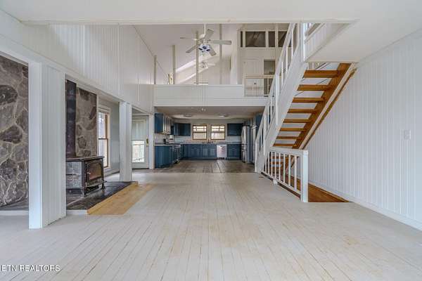 Positioned at the highest elevation on the property, this expansive mountain residence offers sweeping views of the North Carolina mountains and a substantial amount of finished living space in a private setting. Serving as the primary home within a larger homestead opportunity, the residence is livable as-is while still allowing room for refinement and personalization. The home spans approximately 3,100+ square feet of finished living space across multiple levels, featuring large living areas, bonus rooms, office space, and additional finished rooms that provide flexibility beyond the designated bedroom count. The layout offers versatility for everyday living or hosting family and guests. Features include propane service, a tankless water heater, solar backup power, and a wood-burning stove. While some finishing work remains, the home presents a rare opportunity to own a spacious mountain residence with views, privacy, and long-term potential.