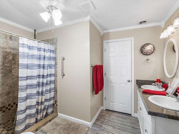 - Ceiling Fan(s), Island, Mini Blinds, Pantry, Smoke Detector, Sump Pump