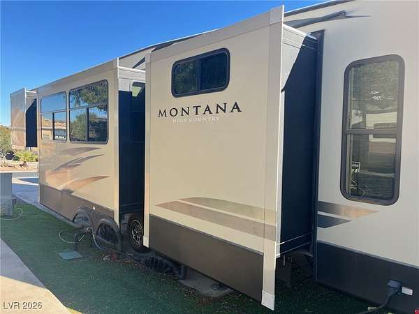Est $1,537/moMust See! Ready to Move-In! Completely Finished lot with Pavers, Shed & Artificial Grass. Included is a Montana High Country Fifth Wheel HM362RD SN# 5365075. Located in a 5 Star Resort. Community offers Swimming Pool, Spa, Fitness Center, Laundry rooms & Showers. Located next to World Class Mountain Biking & Hiking trails. Lake Mead is only 5 miles away. McCarran International Airport & Las Vegas the Entertainment Capitol of the World is only 25 minutes away.