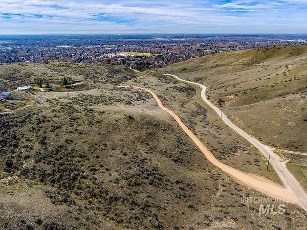 Build your dream home just minutes from town! This 5.8-acre lot (subject to road easement leaving 4.41-acres taxed) includes a 0.90-acre buildable homesite with the remaining acreage rolling topography all situated on a private road. Ada County has approved the property for a single-family residence. The buildable homesite has incredible views of the city with hiking, biking and wildlife all around you. Enjoy the peace and tranquility of your own private Idaho while still being close to restaurants, shopping and entertainment. No CC&Rs!! Come breathe the fresh air and build your forever home! Updated improvements to driveway to meet fire department access and Well to be installed by Seller between March and May 2026. Property can be accessed and walked. Please do not bother neighbors and use new turnaround on property.