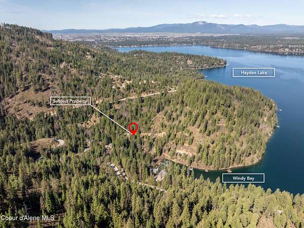 Est $1,529/moSecondary waterfront Hayden Lake residential lot with views of the lake. Two lots with over a half acre of land. Recently surveyed and marked. Community sewer system and current well quotes in documents. Buyer and buyer's agent to verify all information.