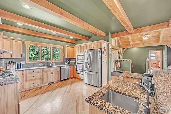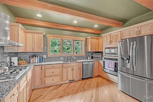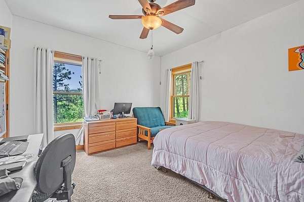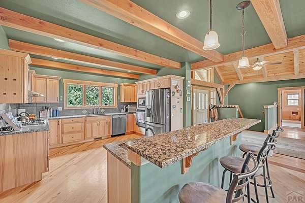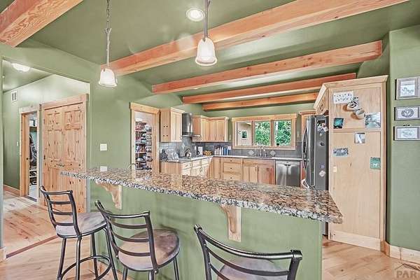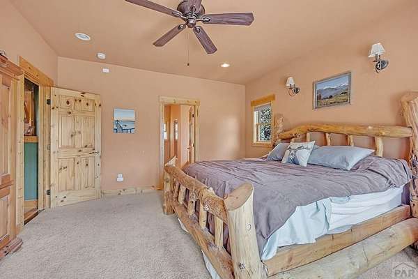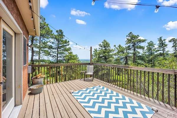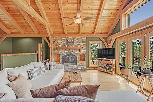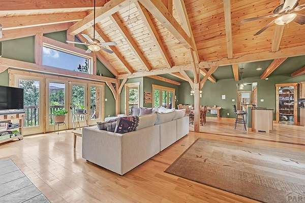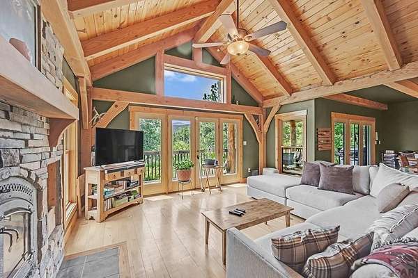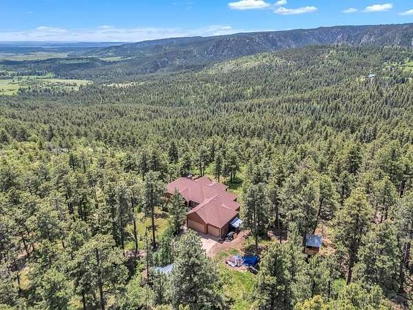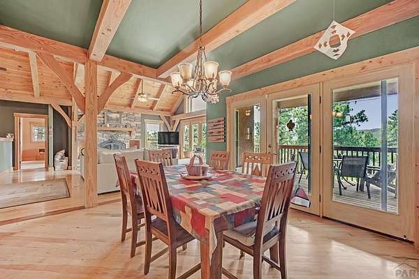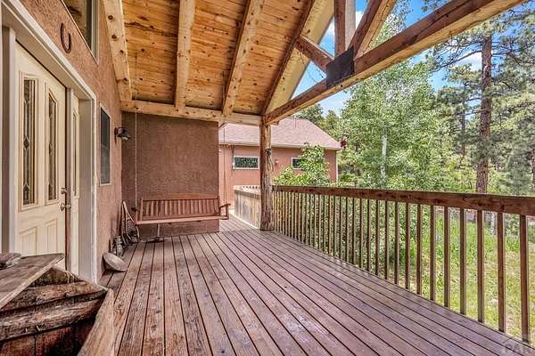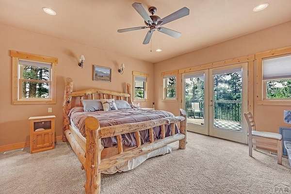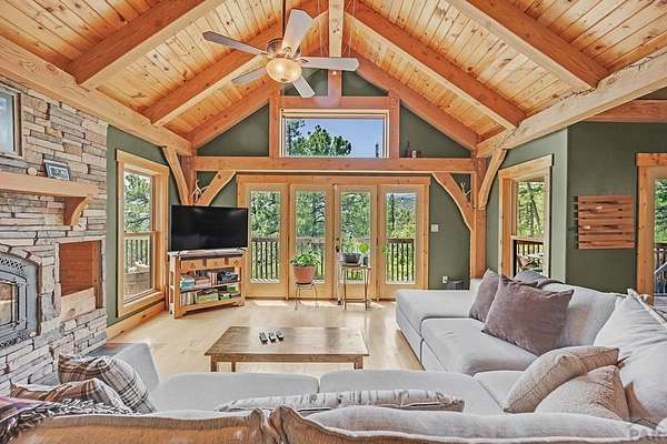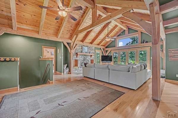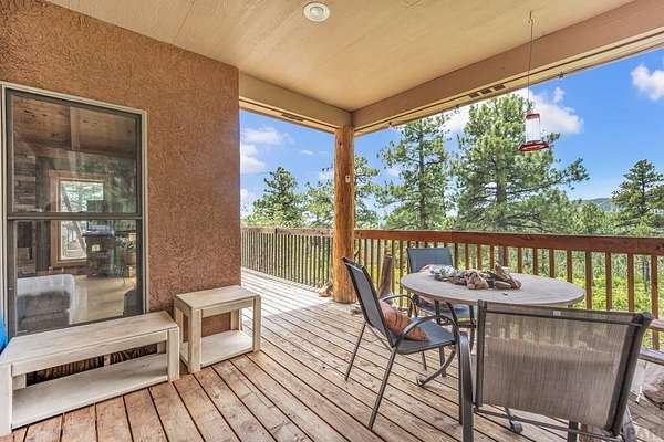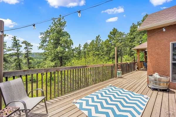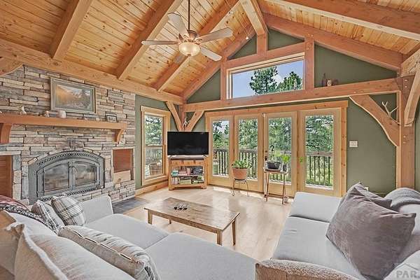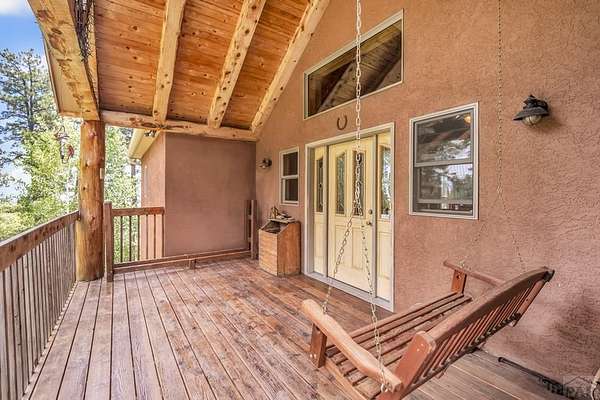 Charming Mountain Retreat on 40 Acres in the Gated Community of Signal Mountain Nestled in Beulah Valley and surrounded by towering pine trees, this beautiful three-bedroom, two-bath home offers the perfect blend of rustic charm and modern comfort. This property provides seclusion along with breathtaking views of Greenhorn Mountain and surrounding canyons. Step inside from the inviting covered deck and be welcomed by vaulted tongue-and-groove pine ceilings, rich wood flooring, and stone fireplace. Wood-framed windows and glass doors flood the home with natural light, highlighting the open-concept living and dining areas and offer walk-out access to a spacious deck, ideal for relaxing, entertaining, or soaking in the stunning mountain scenery. The kitchen features stainless steel appliances, granite countertops, abundant cabinetry, and a large pantry, making it both functional and inviting. The primary suite is a retreat, complete with private deck access, five-piece en suite bath with a garden tub and walk-in shower, and walk-in closet. Two additional bedrooms are spacious sized with ample closet space. The walk-out basement isunfinished, ready for your vision, with a roughed-in bathroom providing endless potential for expansion. An oversized three-car garage offers storage and includes a built-in kennel with access to a dog run. Outside, the property is further enhanced by a chicken coop and loafing shed, perfect for those seeking a peaceful, self-sufficient lifestyle.