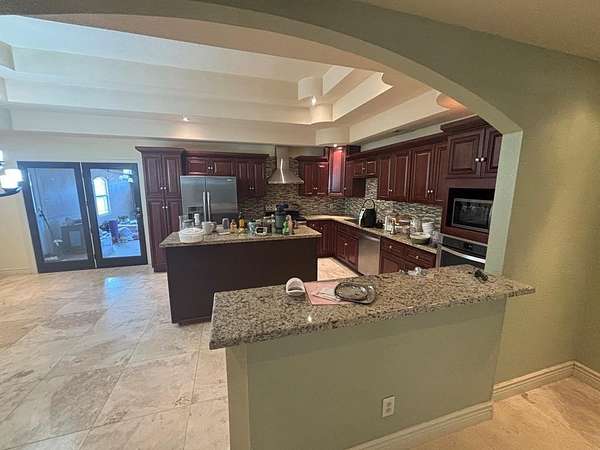 Est $3,044/moBeautifully home sitting on 5 acres, Updated kitchen w/granite countertops, all electric, double oven, water softener, triple level ceiling design, fireplace, oversized laundry, recessed lighting, engineered wood floors, large closets, huge indoor pool in separate building, RV shed, 3 garage spaces, metal perimeter fencing, and much more!