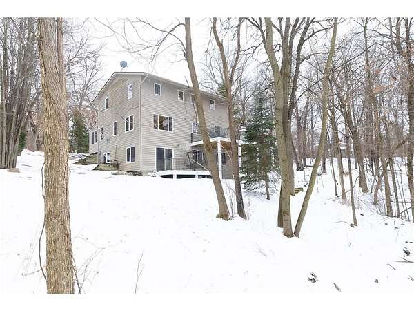 Beautiful two story home on a wooded 2.9 acre lot that backs up the Credit River. Enjoy stunning views from nearly every window or immerse yourself in the natural beauty while lounging on the composite decks. Kitchen has abundant storage, plenty of workspace and stainless steel appliances. The sliding doors offer convenient access to the wrap around deck which leads to the fenced area of the side yard. The main level also has a formal dining room, living room and an incredibly charming sunroom. Main floor laundry and powder room, too! The upper level has 3 bedrooms AND a flex room that could be another bedroom, nursery or home office. The primary bedroom ensuite boasts a walk-in closet, dual sink vanity, and tiled shower. Sunlight and beautiful views continue in the lower level of this walkout home. Another bedroom and 3/4 bath in addition to the family room and rec area make this a lower level a great spot for hanging out and entertaining. Fireplace in the lower level family room is wood burning and the main level living room has an adorable gas stove. The upper level hall bath and main level powder room were recently renovated. And yes, there is heat in the attached 3 car garage. : )