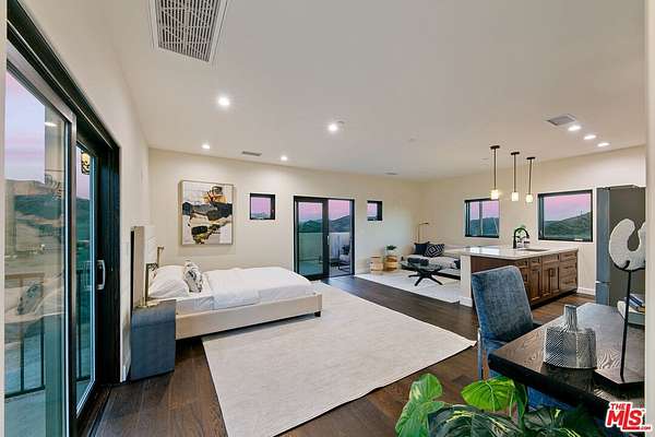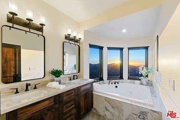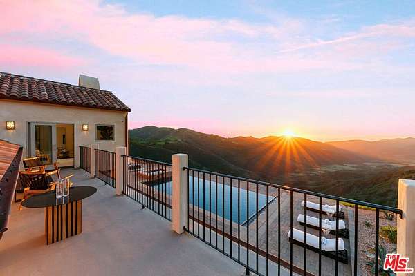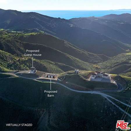 Just completed, this exceptional private estate spans approximately 20 acres, perfectly situated below the magical Boney Ridge in coveted West Malibu. Surrounded by nature and offering complete privacy, the property showcases breathtaking ocean, sunset, and Channel Islands views. The main residence features five bedrooms and four full baths, thoughtfully designed with vaulted ceilings and an expansive living area that flows seamlessly to the outdoors. Walls of glass open to an ocean-view infinity-edge pool and spa, creating a stunning indoor-outdoor lifestyle with multiple areas for entertaining and relaxation. The primary suite is a true retreat, highlighted by a fireplace and a luxurious spa-inspired bath. A fifth bedroom suite, complete with its own private entrance and kitchen, offers flexibility as a guest house or private living quarters. The estate also includes two separate buildable pads with re-approval permits in the final stages. One pad is planned for a fully independent guest house featuring two bedrooms and a two-car garage. The second pad is designed for a barn or car barn, with all utilities conveniently run underground. This rare offering combines new construction, expansive land, panoramic views, and total seclusion in one of Malibu's most enchanting locations. A truly magical estate must be seen to be appreciated.