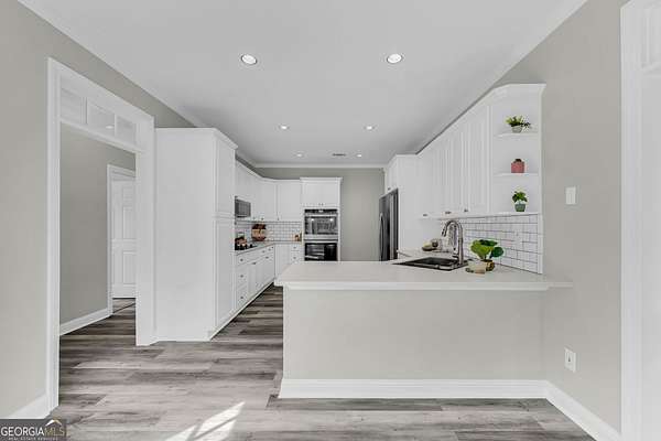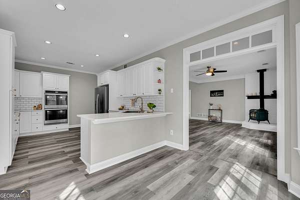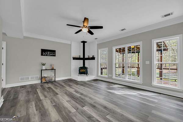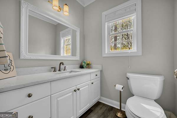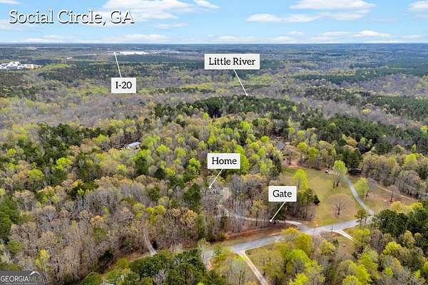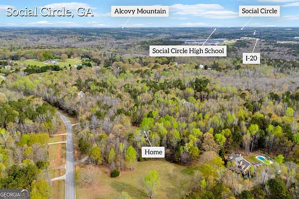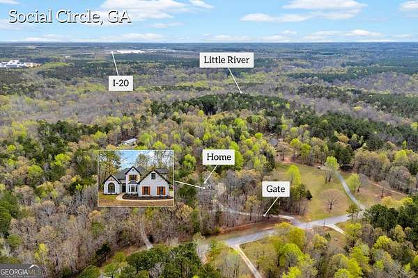 Welcome to an exceptional retreat where luxury meets the peace and tranquility of a private wooded estate. Nestled on nearly 9 pristine acres in one of Social Circle's most desirable locations, this custom brick home offers a rare blend of elegance, privacy, and natural beauty-just minutes from I-20 and the growing Stanton Springs corridor. Inside, thoughtfully curated updates shine, including newly installed LVP flooring that flows seamlessly throughout the main living spaces and stairs. The light-filled great room features a dramatic wall of windows, perfectly framing natural serene views, while the designer kitchen impresses with quartz countertops, stainless steel appliances, double ovens, and custom cabinetry. The main-level owner's suite is a bright and airy sanctuary, complete with vaulted ceilings and a spa-inspired bathroom, featuring an, open-face linen closet, independent shower, soaking tub, and his-and-hers closets. Upstairs offers generously sized bedrooms and a versatile flex space ideal for additional living, relaxing or work-from-home needs...offering beautiful wooded views. Outdoors is the lifestyle here... a large covered deck overlooks blooming serene wooded surroundings, creating the ultimate setting for relaxation, entertaining, and most importantly- adventure!. A rare opportunity to own a refined estate where southern luxury, natural beauty, and peace exist in perfect harmony.