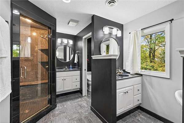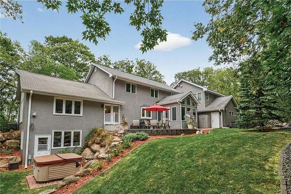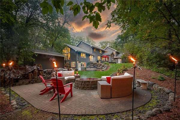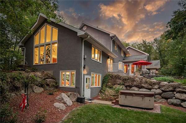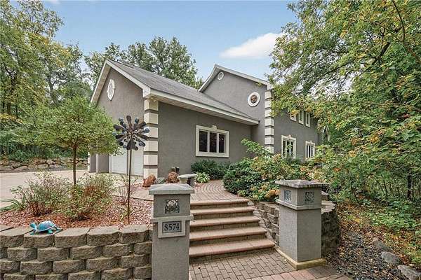 Welcome to your next dream home! Situated on 3.34 wooded acres in Shakopee, this home combines natural beauty, great design, and distinctive style. A paver sidewalk and guest parking area welcome you and your visitors, setting the tone for the custom details you'll find throughout. Inside, over 4,500 finished square feet showcase a home rich in character and warmth--not your typical cookie-cutter design. The open floor plan centers around a vaulted living room with fireplace and floor-to-ceiling windows that face gorgeous, mature trees. In the 4-season porch you'll find another fireplace and vaulted ceiling, making this the perfect spot to spend an afternoon reading. It also has the convenience of stepping directly out to the patio, blending indoor and outdoor living.