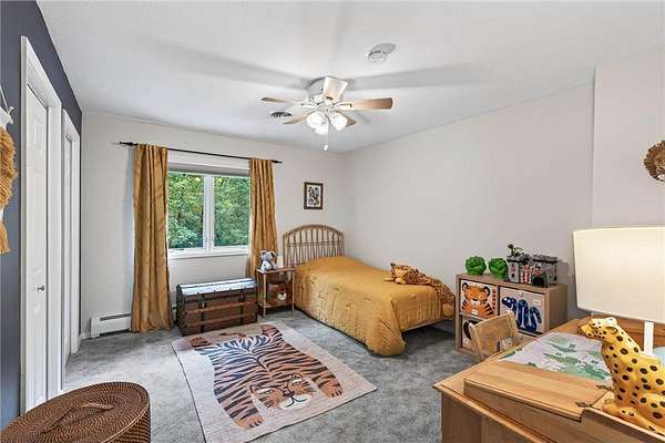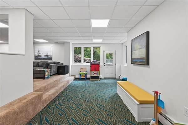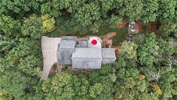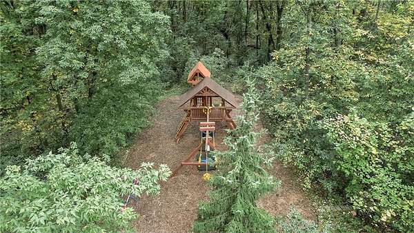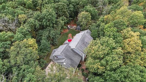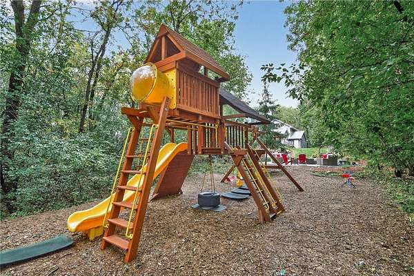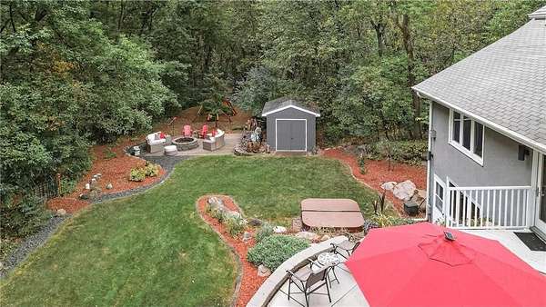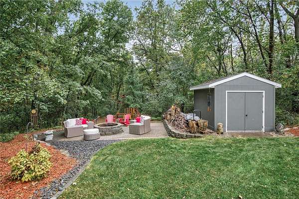 The outdoor living spaces are equally impressive with a large main patio, built-in fire pit with paver patio, and a peaceful wooded backdrop ideal for relaxing or entertaining. The insulated, heated 3-car garage (with an oversized 14x19 third stall) and dual storage sheds give you plenty of space for organizing outdoor and play items. Beyond the main living spaces, you'll find an expansive mulched area perfect for a playground, garden, or gathering spot, along with partially mulched walking trails that wind through the 3+ acre property--ideal for exploring nature and enjoying the serene setting.