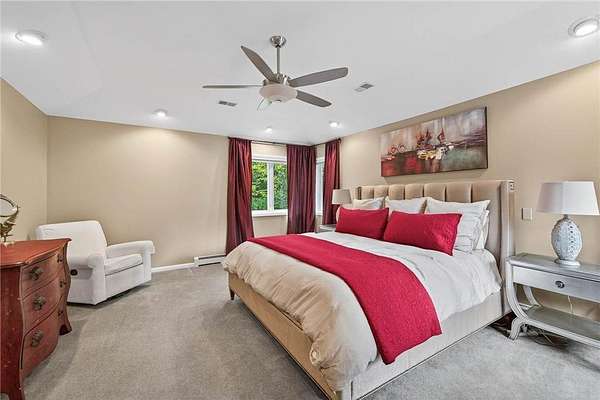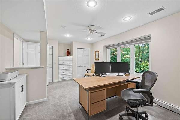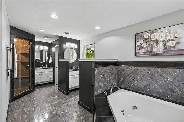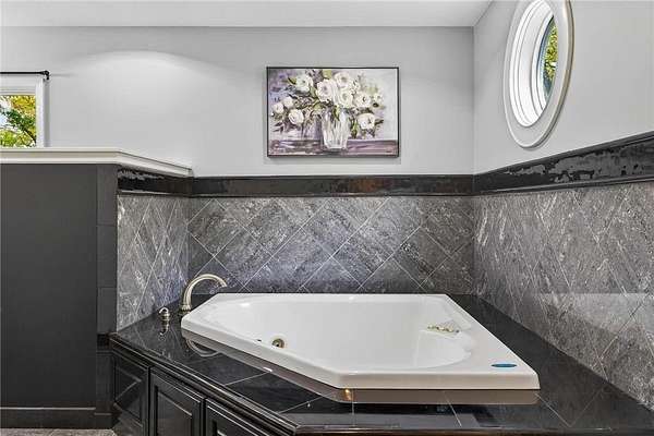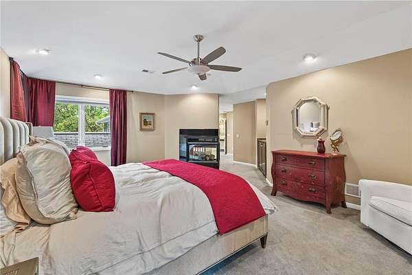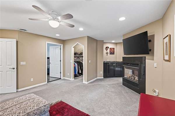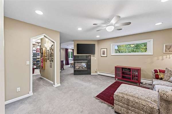 Upstairs, you'll find three additional bedrooms, including a showstopping primary suite with a sitting area, two-sided fireplace, and an incredible, must-see custom walk-in closet. The spa-inspired ensuite features heated tile floors, a jetted tub, dual vanities, makeup area, towel warmer, and a separate shower. The finished walk-out lower level offers endless possibilities with a spacious family room, wet bar, recreation area, and a large laundry room. Additional details such as heated tile flooring, window seats, art niches, a laundry chute, and custom-built features throughout add both style and function.