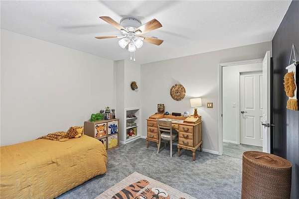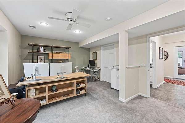 The kitchen impresses with white enamel cabinetry, granite countertops, stainless steel appliances, a desk/coffee station, tile backsplash, and a fantastic walk-in pantry with open shelving and cabinetry for all your storage needs. The main floor bedroom and adjoining bath create a perfect guest suite or option for multi-generational living. You'll also find a main floor flex room that could function as an office or as a playroom with visibility from the kitchen.