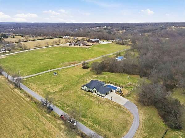 Built in 2023, this stunning 3-bedroom, 3.5-bath home offers the perfect blend of modern comfort and country living on 9.97 picturesque acres. Thoughtfully designed with spacious interiors and high-quality finishes, the home provides both functionality and style. Step outside to enjoy a private pool ideal for relaxing or entertaining, while the expansive acreage offers endless possibilities. The property also features a shop for hobbies, storage, or work needs with a loft space and Bathroom. Plus a dedicated dog pen complete with a heated and cooled dog house-perfect for pet lovers. Adding to the property's character is a seasonal spring that flows during the rainy months, complete with a historic small spring house that adds charm and a sense of heritage. Peaceful, private, and move-in ready, this exceptional property offers space to live, work, and enjoy the outdoors without compromise. Additionally there is target range setup on the wooded area of the property.