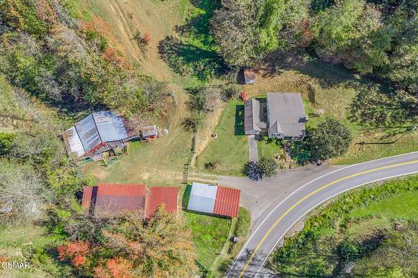 Rare opportunity to own approximately 65 unrestricted acres in East Tennessee featuring an early 1900s farmhouse, barns, pasture, and wooded land with incredible potential for a horse farm, homestead, family compound, hunting property, or cabin development near the Smoky Mountains. Historically a cattle and tobacco farm, the property still includes the original tobacco shed, a large pre-World War II barn, several outbuildings, and open rolling pasture suitable for livestock, horses, or agricultural use. The land offers a beautiful mix of cleared fields and mature woods, creating a private setting where deer, bear, and wildlife are frequently seen. The highest ridge on the property offers scenic seasonal mountain views and views that stretch across the county. 65 acres of unrestricted land, making it an excellent location for future homesites, cabins, or a private estate, the possibilities include multi-generational living, short-term rental cabins, recreational land, or a working farm are endless. The farmhouse features 2 bedrooms, 1 full bath, and a separate laundry room with half bath, along with carpet, vinyl, and laminate flooring and the charm of a home that has stood for over a century. A covered front porch, detached one-car garage, carport/shed, and multiple smaller structures add to the property's functionality. Four generations have called this land home, creating a rich history of family gatherings and farm life. Part of the property was once home to the First Shiloh School, adding a unique historical element to the land. Currently enrolled in Tennessee Greenbelt, this property offers tax advantages for agricultural landowners while providing flexibility for a variety of uses. Whether you're searching for acreage in East Tennessee, a historic farmhouse, horse farm, hunting land, development opportunity, or a private mountain retreat, this unique property offers the space and freedom to bring your vision to life. Property and home being sold AS-IS