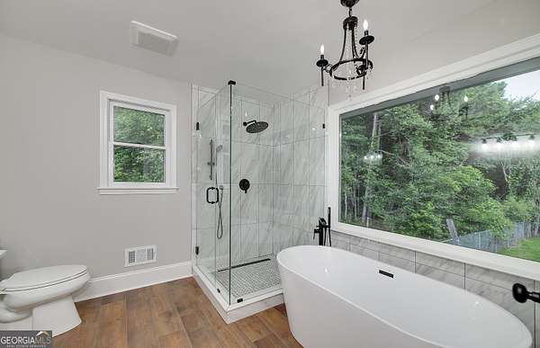 - High Ceilings, Master On Main Level, Separate Shower, Soaking Tub, Tile Bath