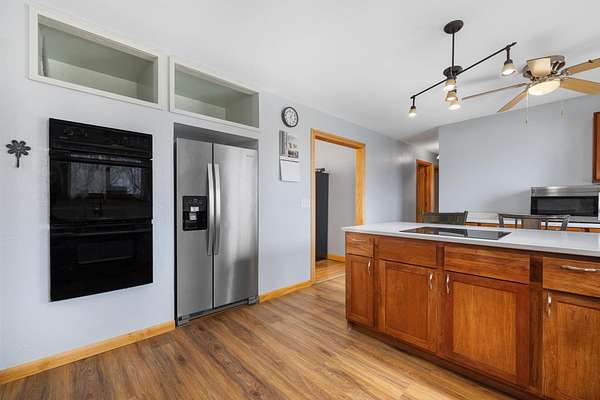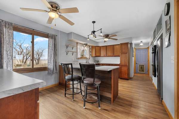 Escape to your own slice of country paradise just minutes from Minot! This beautifully maintained 7.5-acre hobby farm offers the perfect blend of space, comfort, and functionality. The home features 4 bedrooms and 2.5 bathrooms, with a spacious living room filled with natural light from expansive windows that showcase the surrounding landscape. The updated kitchen offers modern convenience, while the recently finished basement provides additional living and entertaining space. Outside, the property is fully equipped for hobby farming or recreational use, featuring a large pole barn(40x96), stall barn(30x40), and a floor heated shop (30x36)—ideal for animals, storage, or projects year-round. Enjoy peace of mind with numerous updates completed in the last five years, including a durable steel roof, solar panels for energy efficiency, newer appliances, and freshly painted exterior and so much more! If you’ve been dreaming of country living with easy access to town, this property delivers the best of both worlds.