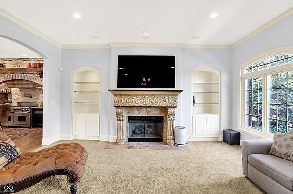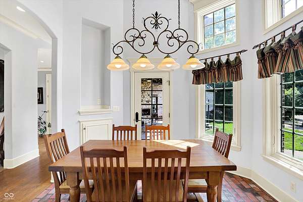 This stunning home with an in-ground pool and a hot tub is seated on nearly 2 acres in the heart of Zionsville's hunt country. This gorgeous French estate is absolutely delightful. Tucked behind a gate with four other homes, the gas lanterns welcome you at the front porch and the stunning hardwoods define wonderful spaces. The incredible fireplace anchors the great room and just steps beyond is the kitchen which will please the chef in you, with its six-burner Dacor gas range, pot filler, a warming drawer & built-in fridge, and a butler's/prep kitchen connecting the main kitchen to the dining room. The breakfast room has stunning views of the back yard and pool, and the separate formal dining room is ready for entertaining. A galley hallway with three sets of French doors leads to the luxurious main floor primary suite. A sitting room welcomes you and leads into the grand bedroom with a fabulous primary bath. As a bonus, the suite has its own access to the outside covered porch, with just steps to the outdoor fireplace and hot tub. What a place to start or end your day! Upstairs two large bedrooms share a jack-and-jill bath (each one has a separate sink and commode). The upstairs bonus room is a perfect space for an office or craft room. There is also a HUGE unfinished room that has electric and plumbing roughed-in and is ready to be a second primary suite or guest/family suite if you should desire. The lower level offers the 4th bedroom and 3rd full bath, a wet bar (labeled kitchen), a fireplace, and multiple flex rooms, presently used as an additional gathering and rec space, an office, and an exercise room. Nothing lacking and truly turnkey.