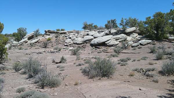 40ac just a short distance from pavement and town. Stunning and beautiful rock features run through this lot giving a spectacular sight. Heavily treed w/ old growth Juniper, Cedar and Pinion Pine. All corners marked for easy boundaries and borders a section(640ac) State Trust Land. Private well for water, owner is unaware of the condition. Well Registration #: 55-575126. Tons of wildlife in the area. Shell of an old structure remains, not in a livable condition. Tons of old treefall for firewood and a few small washes that have been created by the landscape. Stunning views to the S as this lot sits atop of the hill. Old fencing that could be used for animals. No restrictions! High clearance vehicle may be needed and 4x4 in wet conditions.