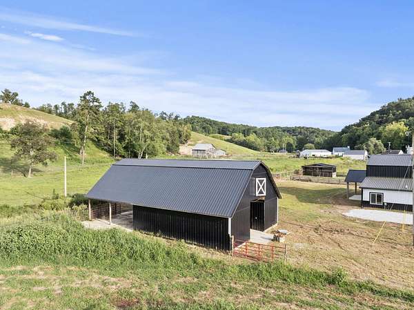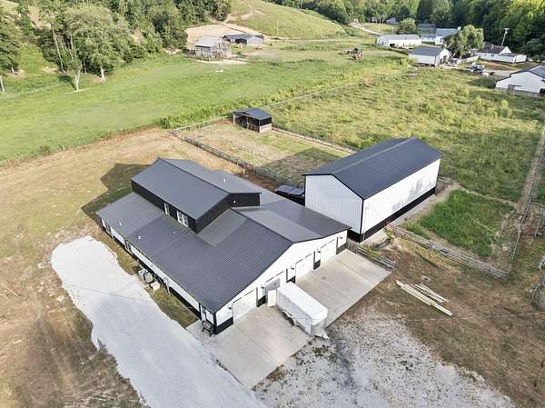 Welcome to this spacious 4-Bedroom (with potential for a 5th or office space) , 3-bathroom barndominium that blends modern comfort with rural charm. Inside, you'll find features like custom cabinetry, double ovens and a nice walk in pantry with counter space, a striking staircase. 2 bedrooms with their own bathrooms downstairs and 2 bedrooms with a "jack and Jill" bathroom upstairs. 4-car attached garage with lost storage offering both functionality and style and an unfinished space with electric ran to make it whatever you are dreaming of! This property is a dream for those looking to homestead or expand their farming operation, featuring 30x50 barn, 24x30 barn, 12x40 machine shed, 36x60 horse barn with stalls, 12x24 run-in shed. With multiple fenced areas already in place, this 12+/- acre farm is perfectly set up for livestock of all kinds. Whether you're raising horses, cattle, or goats or simply wanting the space to live more self-sustainably, this property is ready to accommodate your vision.