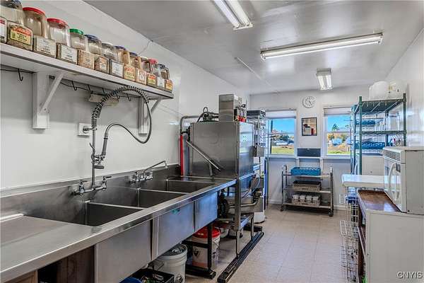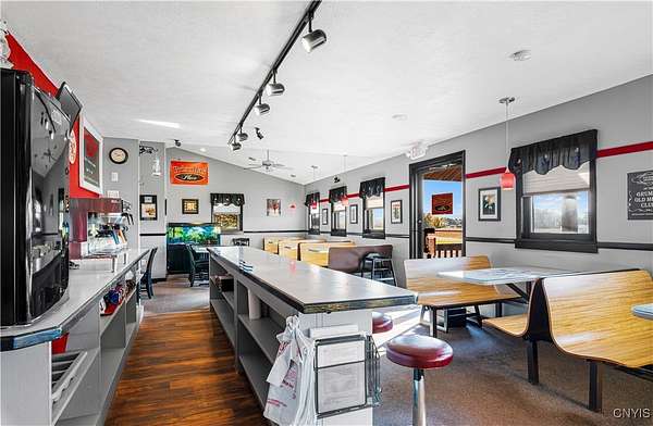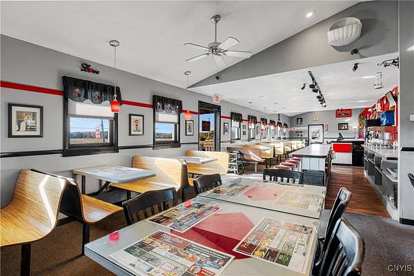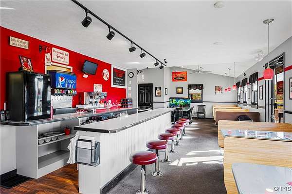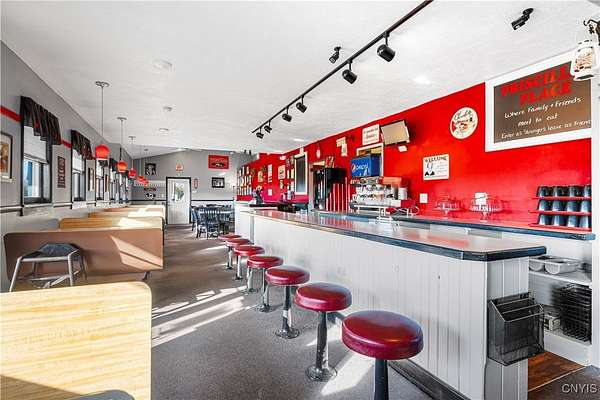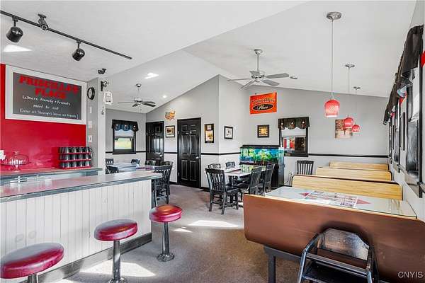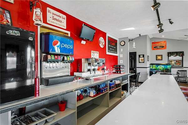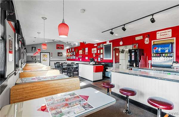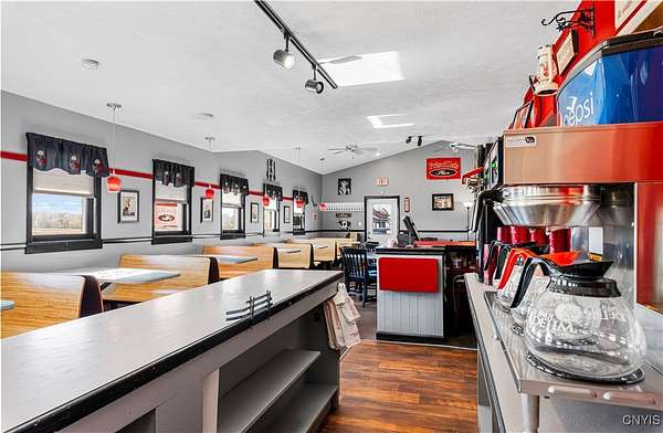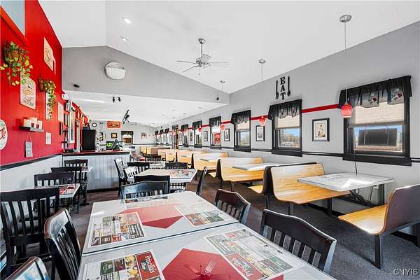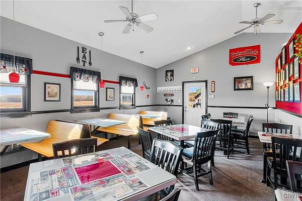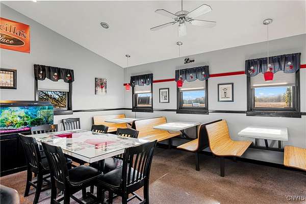 The entrepreneurial spirit is simply like no other! Visionaries that invest in the future, identify stellar opportunities - near or far! Proudly presenting a versatile 1,792 sq. ft. Commercial Property, situated on 6.56 acres, effortlessly boasting opportunities for expansion & use. Strategically positioned in a bustling area, enjoying high visibility & sprawling frontage. Comfortably seating 75-80, PLUS outdoor seating! Commercial grade appliances & equipment convey with this sale, ample parking (30+), 1,000 gallon concrete septic tank with a full basement & walk-out. Featuring stadium lighting & level grounds, where a popular Golf Driving Range once existed. You will find level terrain & an ideal foundation for commercial and/or mixed-use projects. Storage units, a popular investment & option w/ neighboring storage businesses thriving & situated close by. Whether you're looking to create a destination for activity, become a locally popular & famous dining establishment, or establish your own entrepreneurial path, this unique property offers the space & flexibility to bring your vision to life. The Mohawk Valley is thriving, open for business & welcoming YOUR creative footprint!