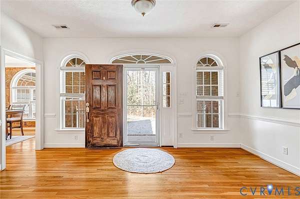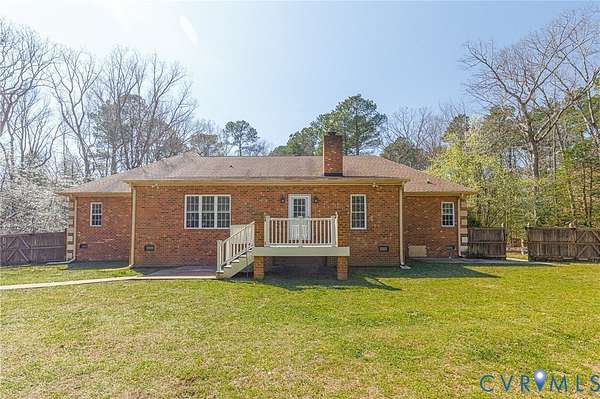 A rare opportunity to own a custom all-brick retreat on 2 private acres in the heart of Mechanicsville. Tucked away off the road, the home offers a surprisingly private setting while still being just minutes from everything Hanover County has to offer. With over 3,700 sq ft of flexible living space, this home blends peaceful surroundings with everyday convenience. Inside, a vaulted family room with a striking stone fireplace opens to an oversized kitchen featuring granite countertops, stainless steel appliances, tile backsplash, and a large walk-in pantry. The expansive primary suite offers two walk-in closets and a spa-like bath with a double vanity, oversized walk-in shower, and a jetted soaking tub. The flexible floor plan includes multiple additional rooms that can function as bedrooms, office space, rec room, or guest/in-law suite-allowing the home to live like a 5-bedroom (septic rated for three). Step outside and enjoy your own backyard retreat with a Trex deck, stamped concrete patio with brick fireplace, fenced yard, sport court, playset, and a walking trail around the property. This move-in ready home also features low-maintenance all-brick construction, an oversized two-car garage, HVAC replaced in 2018, water heater replaced in 2025, a clean and refreshed crawlspace with a new vapor barrier and dehumidifier, newer garage doors (2024), and fresh paint and carpet. Enjoy privacy, space, and room to breathe while still being minutes from everything Mechanicsville has to offer-located in Hanover County schools with NO HOA.