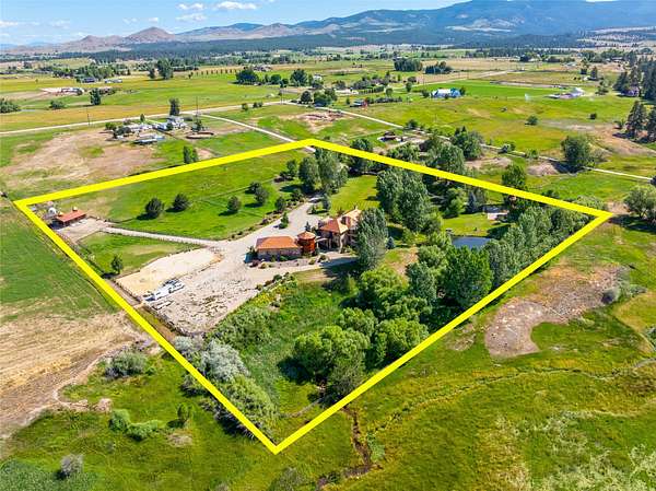 Welcome to 859 Hamilton Heights Road, an extraordinary Bitterroot Valley estate where luxury, land, and lifestyle converge. Encompassing approximately 11 acres of productive Montana ground, this property is anchored by a stately residence exceeding 9,000 square feet, thoughtfully designed to accommodate both intimate family living and large-scale gatherings with ease. The home's interior blends timeless Montana elegance with resort-level comfort. Multiple living areas, formal and informal entertaining spaces, and private bedroom suites allow owners and guests alike to enjoy both connection and privacy. A custom, high-end kitchen outfitted with top-of-the-line appliances serves as the heart of the home, ideal for everyday living or catered events. Architectural details include rich wood accents, stonework, fireplaces throughout, spa-style amenities including a sauna, and expansive recreation spaces well suited for games, fitness, or relaxation. A 1,164-square-foot guest house is thoughtfully positioned near the fruit tree orchard, offering close proximity to the main residence while maintaining a sense of privacy and comfort-perfect for extended family, guests, or on-site hosting needs. Outdoors, the estate unfolds into a postcard-worthy setting featuring lush irrigated pasture, mature landscaping, a scenic creek, private trout pond, fenced paddocks, barn and tack room, large garage, and manicured event lawns, all framed by sweeping mountain views. These amenities support a wide range of uses, from equestrian pursuits and agricultural production to weddings, retreats, and seasonal lodging. The property has been successfully recognized and utilized as an event and hospitality destination, while still preserving the integrity, tranquility, and privacy expected of a true luxury estate. Situated just minutes outside Hamilton, Montana, residents enjoy convenient access to dining, healthcare, and local amenities, while remaining immersed in the natural beauty and recreational opportunities of the Bitterroot Valley-world-class fly fishing, hiking, wildlife viewing, and year-round outdoor adventure. This is more than a home-it is a legacy asset, offering exceptional lifestyle appeal, income potential, and long-term value in one of Montana's most desirable valleys.