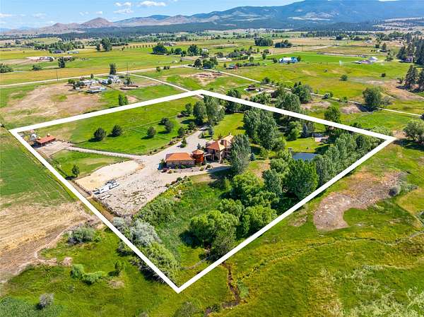 Welcome to 859 Hamilton Heights Road, an extraordinary Bitterroot Valley estate where luxury, land, and lifestyle converge. Encompassing approximately 11 acres of productive Montana ground, this property is anchored by a stately residence exceeding 9,000 square feet, six bedrooms and eight bathrooms, thoughtfully designed to accommodate both intimate family living and large-scale gatherings with ease. The home's interior blends timeless Montana elegance with resort-level comfort. Multiple living areas, formal and informal entertaining spaces, and private bedroom suites allow owners and guests alike to enjoy both connection and privacy. A custom, high-end kitchen outfitted with top-of-the-line appliances serves as the heart of the home, ideal for everyday living or catered events. Architectural details include rich wood accents, stonework, fireplaces throughout, spa-style amenities including a sauna, and expansive recreation spaces well suited for games, fitness, or relaxation. A 1,164-square-foot one bedroom, two bathroom guest house is thoughtfully positioned near the fruit tree orchard, offering close proximity to the main residence while maintaining a sense of privacy and comfort-perfect for extended family, guests, or on-site hosting needs. Outdoors, the estate unfolds into a postcard-worthy setting featuring lush irrigated pasture, mature landscaping, a scenic creek, private trout pond, fenced paddocks, barn and tack room, large garage, and manicured event lawns, all framed by sweeping mountain views. These amenities support a wide range of uses, from equestrian pursuits and agricultural production to weddings, retreats, and seasonal lodging. The property has been successfully recognized and utilized as an event and hospitality destination, while still preserving the integrity, tranquility, and privacy expected of a true luxury estate. Situated just minutes outside Hamilton, Montana, residents enjoy convenient access to dining, healthcare, and local amenities, while remaining immersed in the natural beauty and recreational opportunities of the Bitterroot Valley-world-class fly fishing, hiking, wildlife viewing, and year-round outdoor adventure. This is more than a home-it is a legacy asset, offering exceptional lifestyle appeal, income potential, and long-term value in one of Montana's most desirable valleys.