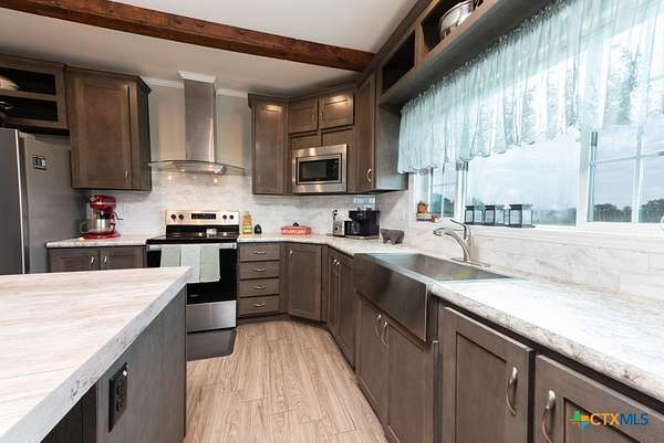 Enjoy peaceful country living just minutes from town with this well-maintained 3 bedroom, 2 bathroom manufactured home on 2.5 acres. The split bedroom floorplan offers privacy, while the open-concept kitchen-with a center island and pantry-flows seamlessly into the living and dining areas, perfect for everyday living and entertaining. The primary suite features a walk-in closet and a spacious bath with dual sink vanity, soaking tub, and separate shower. A dedicated laundry/utility room adds convenience. The property is fully fenced around the perimeter and offers endless possibilities for outdoor living-whether you dream of building a shop, raising animals, starting a garden, or creating your own backyard retreat. Located in Luling, you'll enjoy the charm of small-town living with easy access to nearby amenities and major highways.