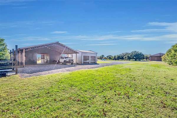500gal Reverse Osmosis water treatment system, 500gal LP tank, LP appliances, and a Generac whole home generator are only SOME of the amazing features of this home as well. Attached to the home is a 2,500 sq ft garage workshop with two roll-up doors, ideal for equipment, vehicles, or creative projects. Need even more space? A detached 3,250 sq ft concrete-block shop with full slab and three roll-up doors stands ready for storage or heavy-duty work. The property also includes a 3-stall, center-aisle barn with tack and feed room--each stall matted, with two offering runs that open into larger paddocks. Nearly 30 acres of lush, uninterrupted pasture make this an ideal setup for horses or livestock. This parcel also comes with primary ownership in a contiguous parcel that fronts on Lake Harney, connecting to the St. Johns River. Additional contiguous ~200 acres available as well. Don't miss your opportunity to own a move-in ready ranch, that is convenient to all Central FL has to offer!