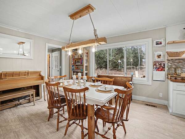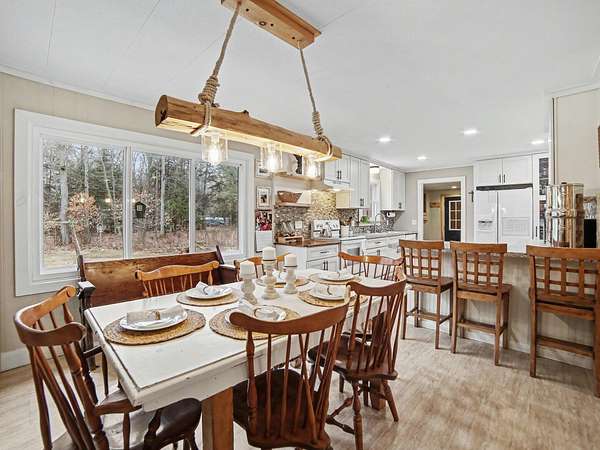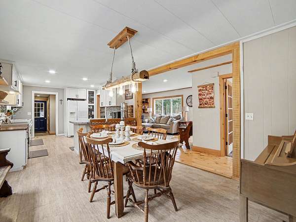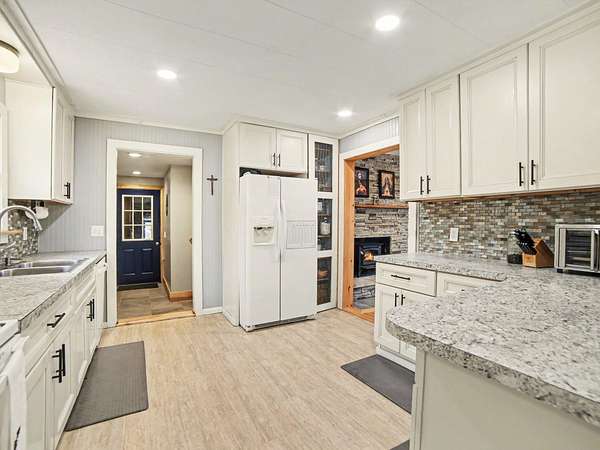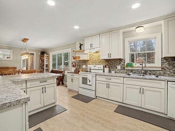 This well-maintained stick-built ranch-style home offers nearly 1,400 sq. ft. of comfortable living space, featuring 4 generously sized bedrooms and 1.5 updated baths. Home is being sold without land and must be placed on property owned by the buyer. A mover is already arranged, making this a rare opportunity to secure a full-size home with minimal hassle. Step inside from the inviting front porch into a bright living room featuring rich hardwood floors, natural wood trim, a stylish stacked stone fireplace, and a large picture window that fills the space with natural light. The updated kitchen offers white soft-close cabinetry, tiled backsplash, and a convenient snack bar overlooking the dining area. The main floor includes laundry, four spacious bedrooms, and 1.5 baths, providing a functional layout with easy single-level living. Opportunities like this are hard to find--schedule your showing today.