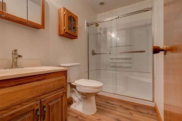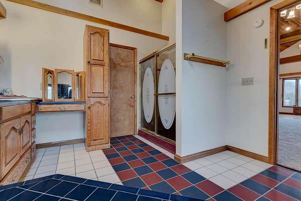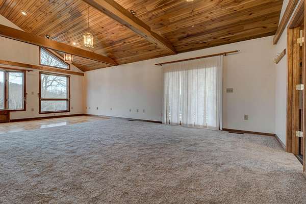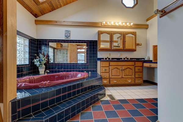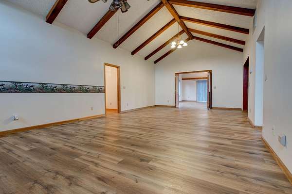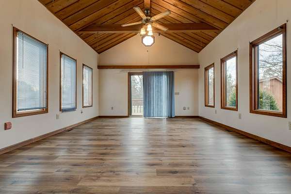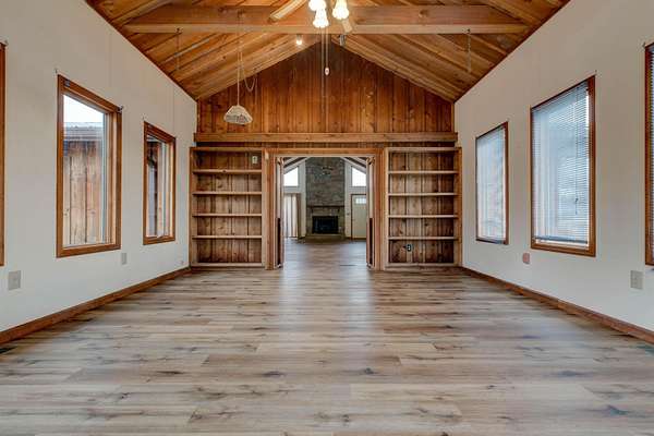 - Beamed Ceilings, Bookcases, Cathedral Ceiling(s), Double Vanity, Natural Woodwork, Open Floorplan, Walk-In Closet(s)
