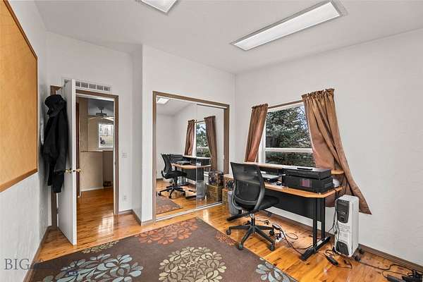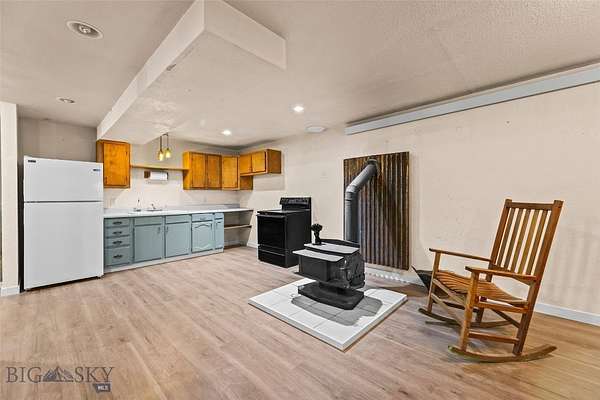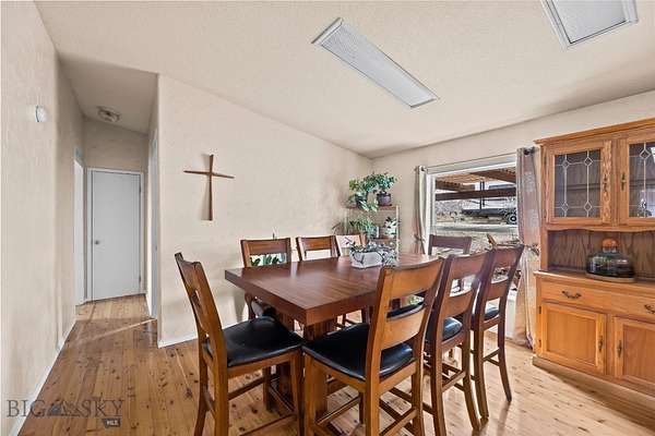 86 Austin Drive is a six-bedroom, three-bath property on 20 acres just outside Three Forks, bordering state land with open farmland and mountain views in every direction. At 3,024 square feet across two fully functional levels, the layout is the story here. The main level offers 1,512 square feet with four bedrooms including a primary suite, two full baths, a kitchen, dining area, and living room with hardwood flooring throughout. A covered porch frames the views. A wood stove anchors the living space. The lower level is fully self-contained - 1,512 square feet with its own kitchen, two bedrooms, a full bath, family room, dedicated laundry, and a separate entrance. Multi-generational living, a long-term rental, or room for extended family. The floor plan handles all of it without modification. Outside you have an equipment barn, shed, and partial fencing. Metal roof. Concrete wall foundation. Well water, septic, and propane heat. Per Gallatin County, the property carries no zoning restrictions or land use limitations, with potential for a lot split - a meaningful detail at 20 acres. Twenty acres. State land on your fence line. Two kitchens. Lot split potential. No zoning. $2,057 in annual taxes. No HOA.