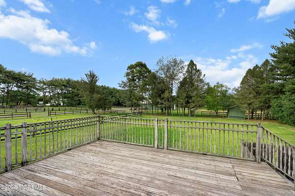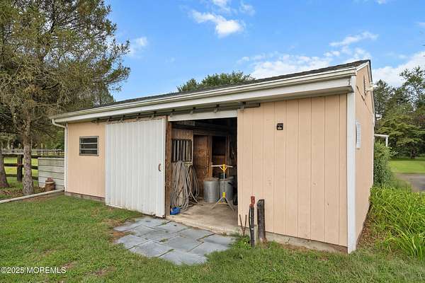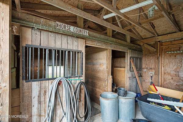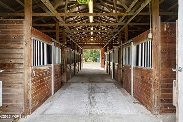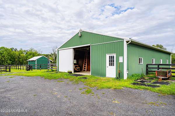 TURN-KEY 13-ACRE HORSE FARM - EQUESTRIAN PARADISE with 7-STALL BARN and LIGHTED OUTDOOR ARENA - Truly the complete package you have been waiting for! Discover your dream equestrian estate on this beautiful 13 acre horse farm with income producing potential, perfectly designed for horse enthusiasts and savvy investors alike. Nestled in a serene country setting, this turn-key property offers everything you need to live, work and thrive in the equestrian lifestyle & start generating income immediately! Welcome to this beautifully maintained, charming 3 bedroom, 2 bath bi-level style home with ample space for family or guests, blending rustic charm with modern conveniences. The upper level features an open concept living area and modern kitchen with granite countertops, 3 bedrooms and 2 full bathrooms. Large windows flood the space with natural light, offering picturesque views of the rolling pastures. The windows have all been replaced and are all new Anderson (except two picture windows) and the slider is Pella. The lower level features a large den, potential bedroom, laundry room and flexible space with a separate entrance. This home is ideal for owner-occupants and/or the home hosts the potential to create rental space for additional income. Relax and unwind in your private oasis with a spacious deck overlooking a beautiful in-ground pool with a brand new liner... A huge bonus! Perfect for summer gatherings or quiet evenings. At the heart of this equestrian paradise, is a 7-stall Conesoga 60' x 35' barn, equipped with (7) spacious 12' x 12' matted stalls, a tack room, indoor wash stall, (2) outdoor wash stalls and ample storage for hay, feed and equipment. Designed for functionality and comfort, it is ideal for boarding, training or personal use. The concrete center aisle and waterproof overhead lights allow for easy maintenance, ensuring your horses are housed in comfort, safety and style. The gently rolling land, 13-acres of lush pasture, is fully fenced, providing safe and secure grazing areas for horses. There are nine paddocks in total (including the Ring) allowing for rotational grazing. A professionally designed & lighted 240' x 160' outdoor grass/sand riding arena with fabulous footing, and a turn-out shed, is perfect for jumping, training or evening rides, offering year-round usability. Running the perimeter of the farm is a scenic and functional grass gallop path that is ideal for exercising horses, leisurely rides, or for standardbred training. A charming shed with 2-stalls is perfect for additional storage. Previously operating as a successful equestrian facility, this farm offers potential to generate steady revenue through boarding, training, and/or lesson programs. The infrastructure is in place to continue or expand operations, making this a rare turn-key investment. Additional amenities includes a well-maintained paved driveway, ample parking for trailers, and easy access for clients or visitors. The potential for additional outbuildings adds versatility to the farm's layout. This property borders the scenic Jumping Brook Creek and comes complete with a dock and also includes Raparian Water Rights. Enjoy the peaceful sounds of the creek or fishing and kayaking from your own property. Conveniently located to major highways with easy commute to NYC or Phila, and within close proximity to Joint Base McGuire-Dix-Lakehurst, this property offers the perfect blend of rural tranquility and accessibility. Enjoy nearby trails at Colliers Mills Preserve, equestrian events, and a tight-knit community of horse lovers. Whether you're an equestrian professional or seeking a serene retreat with income potential, this property is a rare find. Turn the key to your new lifestyle! Schedule a showing today to experience this equestrian haven firsthand! Don't miss the LOW property taxes. Property sold AS-IS.**
