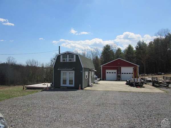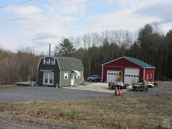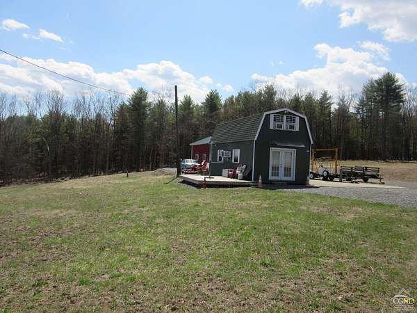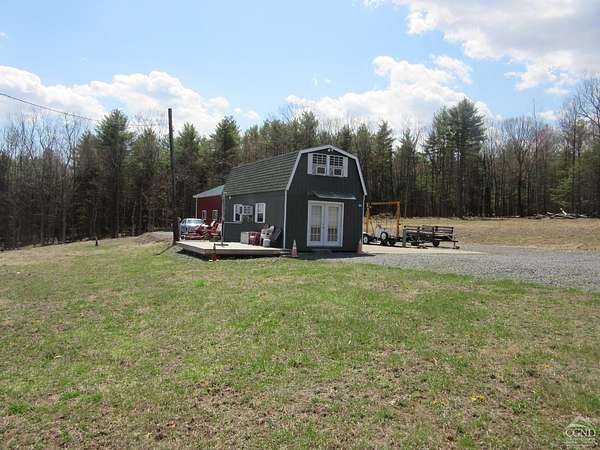 Beautiful 3 acre lot on cul de sac with a tiny house, a converted Amish built Cairo shed 14 x 28 with a loft, and 1200 sq ft 30x30 Pole Barn. The tiny house is 3 season with heat and air conditioning (15,000 watt ac on main floor and (2) 8000 watt units upstairs). Heating would need updating for winter season. Modest kitchen with refrigerator, sink and microwave. Bath with shower. Could be a charming cottage or just a comfy get away. The metal frame pole barn is 1,200 sq ft with 2 overhead doors (10x11 and 9x10). Windows are insulated and it has 12 ft ceilings. Presently shares a 100 amp service, wiring needs to be completed in barn but compressor is wired. Also, it includes a 9,000 lb auto lift. The owner is an automotive enthusiast and this was his upstate get away. East Durham is close to the mountains for recreation and Zoom Flume water park in Durham. This area is known for it's restaurants, entertainment and Irish center. Come and enjoy!