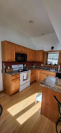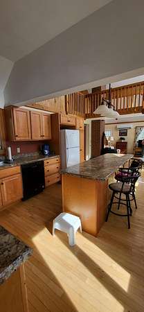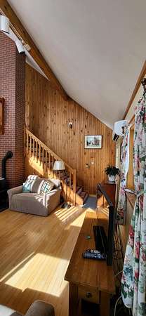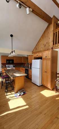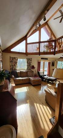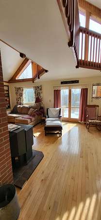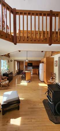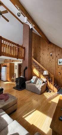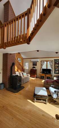 Well-kept Chalet style home with beautiful gardens, oversized garage with bonus space on the 2nd floor (could be used for storage or future living space). Large windows radiate sun year round providing a bright open layout and beautiful hardwood floors. Kitchen was updated in 2011, plus this home offers a unique catwalk that guides you to view-filled nook above the living space. Mudroom entry includes washer and dryer for 1st floor convenience. This area has its own heating zone and a pocket door to the kitchen. 2 new heat pumps to supplement the oil heating and provide the rooms with cool air in the summer months. A Harmon pellet stove in the living room also used to supplement the heating. A new wrap around deck with bump out, features red cedar decking. Ample privacy with mountain view, near ski areas and hiking trails.