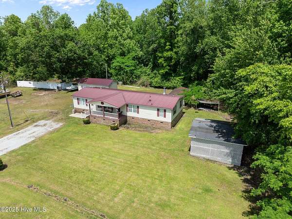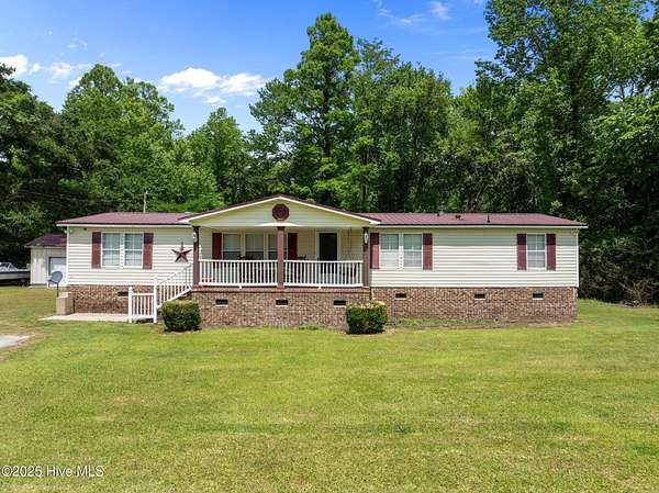 Wind your way outside of Washington city limits to over 5 acres (2 combined parcels) offering tranquility and expansive outdoor potential while still being just 10 minutes from downtown. Whether you're looking to just do some front porch sittin' or take full advantage of the vast land surrounding you, the possibilities are endless. This generously sized manufactured home features a thoughtful split-bedroom design, with two bedrooms and a bonus room (with closet) sharing a full bath on one side, and the primary suite with a large en-suite bathroom on the other. Two spacious living areas provide plenty of room to unwind and entertain. The kitchen is equipped with abundant countertop space, ample storage, and a charming breakfast nook for three, with the dining area conveniently adjacent. A dedicated laundry/mudroom on the backside adds functionality and ease. Whether you choose to renovate or enjoy it as is, the options are yours to explore!