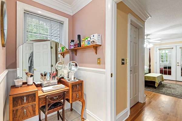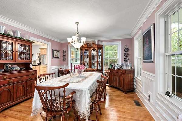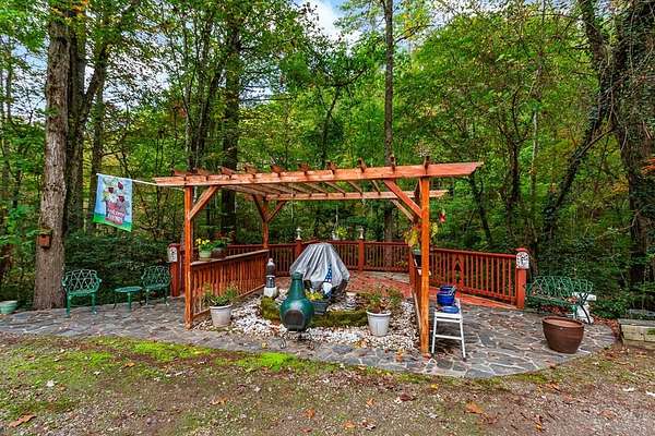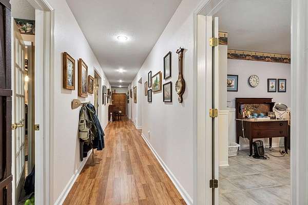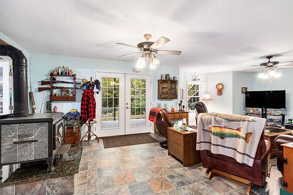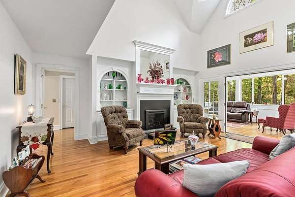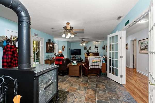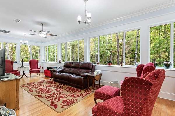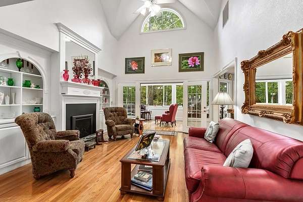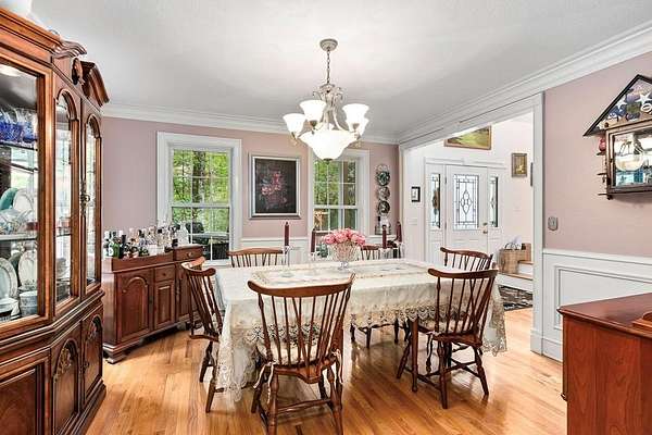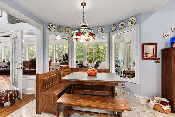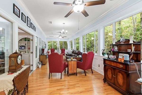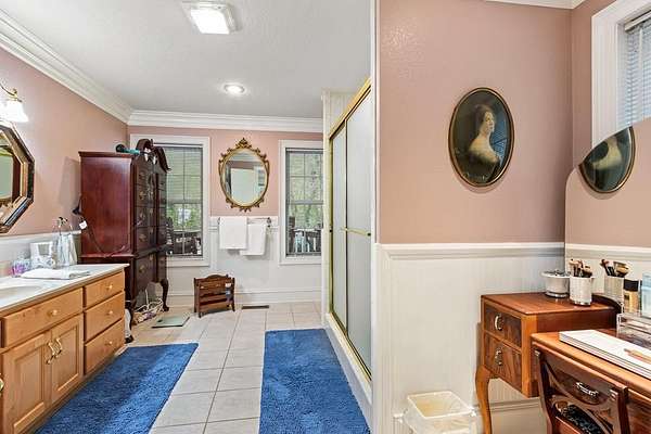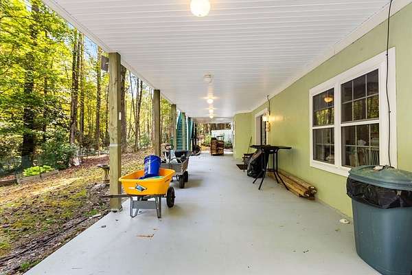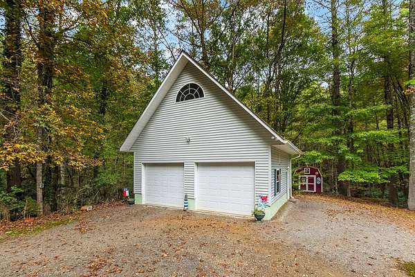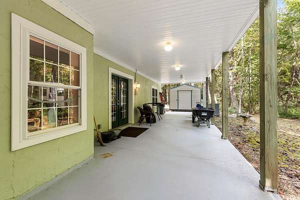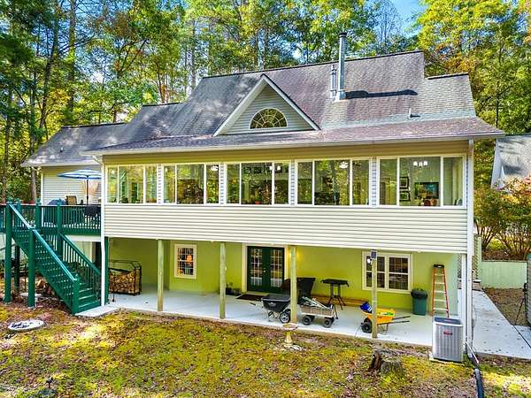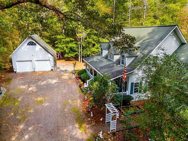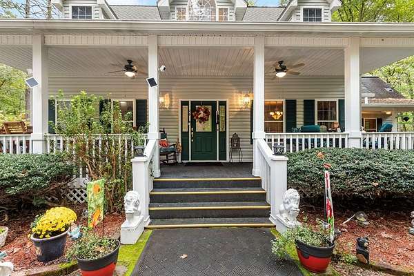 Almost completely surrounded by picturesque Rapier Mill creek on over 11 wooded acres, this stunning 3-bedroom, 3.5-bathroom executive home offers a perfect blend of luxury, comfort, and privacy. A long, winding driveway under a canopy of hardwoods and pines leads you to this private oasis. The property features a 24' x 26' double detached garage, two additional outbuildings, and ample parking for multiple vehicles. The landscaped yard includes established garden beds and a patio with a pergola and a deck overlooking the creek. Step up onto the full-length front porch and through the stunning beveled-glass front door and into the grand foyer. To your right, the formal dining room is bright and inviting, with large windows that frame beautiful views of the surrounding woods. The gourmet kitchen offers abundant cabinet and granite counter space, an island with a vegetable sink, stainless steel appliances, and a tile backsplash. The adjoining breakfast area, with a charming bay window, opens to a small porch with stairs leading to the backyard. Just off the kitchen, a large laundry room has several built-in cabinets, a utility sink, and access to a third porch. The light-filled sunroom offers peaceful views in every direction and opens via double glass doors into the elegant living room, with vaulted ceiling and a gas-log fireplace flanked by built-in shelving. The luxurious main-level Master Suite includes its own access to the sunroom, a spacious layout, and a spa-like en suite bathroom. Upstairs, two large guest bedrooms and a full bathroom are connected by a walkway overlooking the living room below. Downstairs, the lower level expands the living space with a recreation room with a wood-burning stove and doors to a covered porch. Two bonus rooms, a full bathroom, and a mechanical room complete this level. Every inch of this exceptional home reflects thoughtful design, fine craftsmanship, and an effortless connection to nature--offering a truly one-of-a-kind haven.