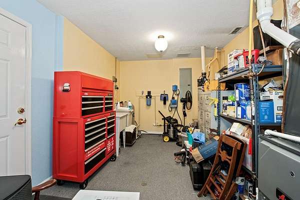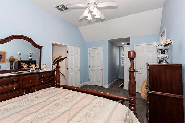 - Ceiling Fan(s), Granite Counters, Kitchen Island, Laundry On Main, Primary On Main, Smoke Detector, Tile Shower/Tub, Vaulted Ceiling(s), Walk-In Closet(s), Wallpaper, Washer/Dryer Connection