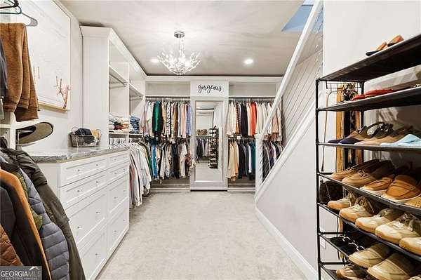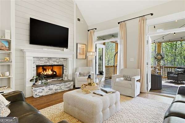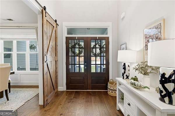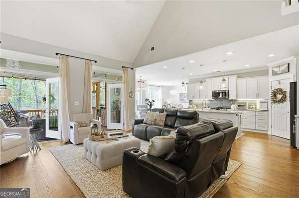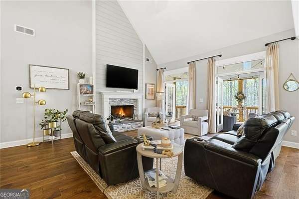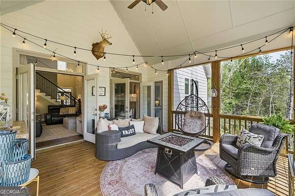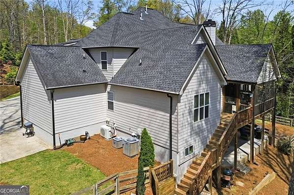 Tucked away on almost 2 PRIVATE ACRES IN A CUL-DE-SAC, this CUSTOM-BUILT ESTATE offers the kind of space, privacy, and flexibility that's hard to find, just minutes from GA-400 AND LAKE LANIER in DAWSONVILLE. This thoughtfully designed 6-BEDROOM, 4-BATHROOM home features a true OWNER'S SUITE ON THE MAIN with an ELECTRIC FIREPLACE, HIS & HER VANITIES, SOAKING TUB, OVERSIZED SHOWER, AND A TWO-STORY WALK-IN CLOSET, plus a SECONDARY BEDROOM OR OFFICE WITH FULL BATH ON MAIN. The heart of the home is the LIGHT-FILLED KITCHEN WITH A MASSIVE ISLAND OVERLOOKING THE LIVING ROOM, GAS RANGE, GRANITE COUNTERTOPS, and a cozy READING NOOK/KEEPING AREA, along with a WET BAR/COFFEE BAR WITH DRINK FRIDGE, DINING ROOM, MUDROOM, and 3-CAR GARAGE. Upstairs offers 3-OVERSIZED BEDROOMS, while the terrace level features a PRIVATE ENTRY APARTMENT WITH KITCHENETTE, LIVING SPACE, BEDROOM, AND FULL BATH-perfect for in-laws or teens-plus UNFINISHED STORAGE. Enjoy peaceful wooded views from the VAULTED SCREENED-IN PORCH through DOUBLE DOORS, unwind by the FIRE PIT, and take advantage of the 4TH CAR GARAGE IN THE BASEMENT FOR BOAT OR EQUIPMENT STORAGE.