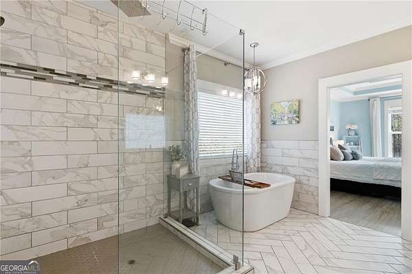 - Beamed Ceilings, Double Vanity, Entrance Foyer, High Ceilings, Tray Ceiling(s), Walk-In Closet(s)