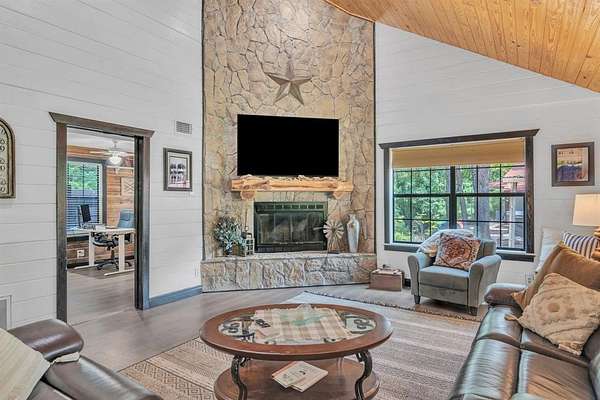 The main house features a spacious master suite with a jacuzzi tub, a large utility room that could be converted to a third bedroom, a stone fireplace, and a sunroom doubling as a second living area. Enjoy outdoor relaxation in the 18x11 gazebo. Modern upgrades include a new water heater, dishwasher, microwave, oven, and a Generac generator. Public utilities and two septic systems support the main house and a furnished cabin, ideal as a mother in law suite or rental. A pump house with a 500 gallon tank and city water ensures reliability. Infrastructure is ready for additional cabins.
